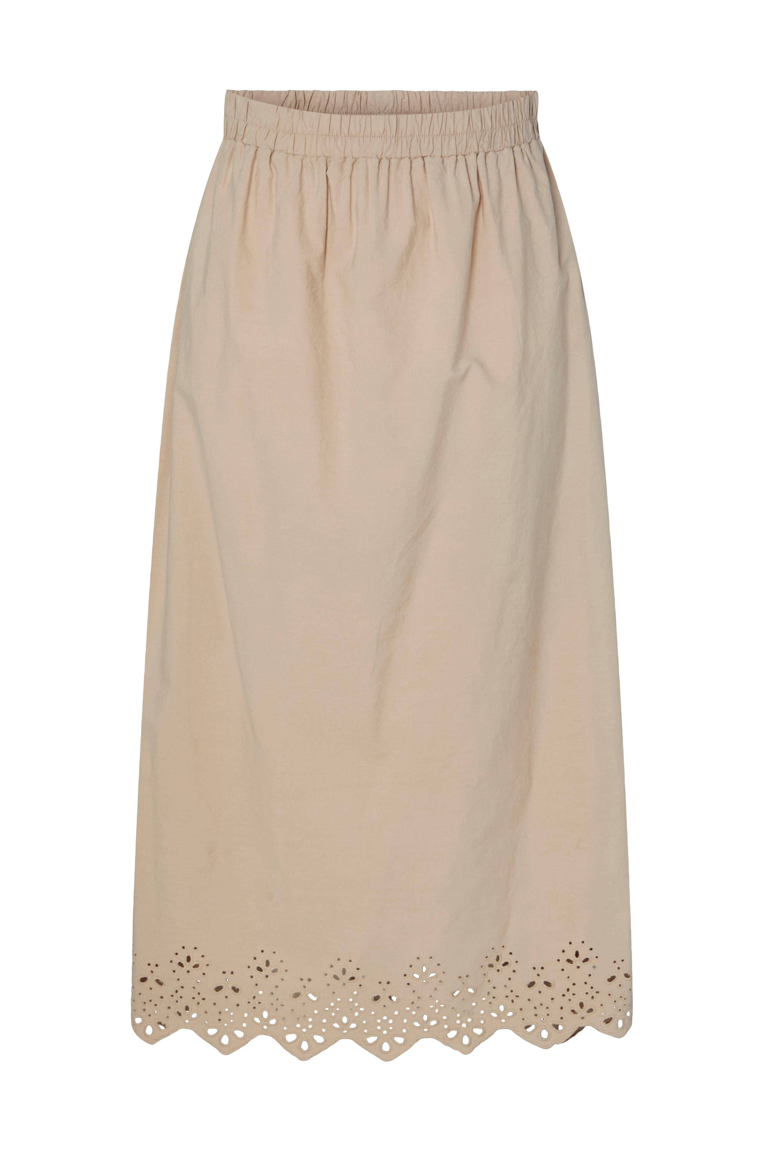 • Let udsvingende model• Elastisk linning• Hulbroderier nederst med bølget søm• Længde: 91 cm i størrelse S