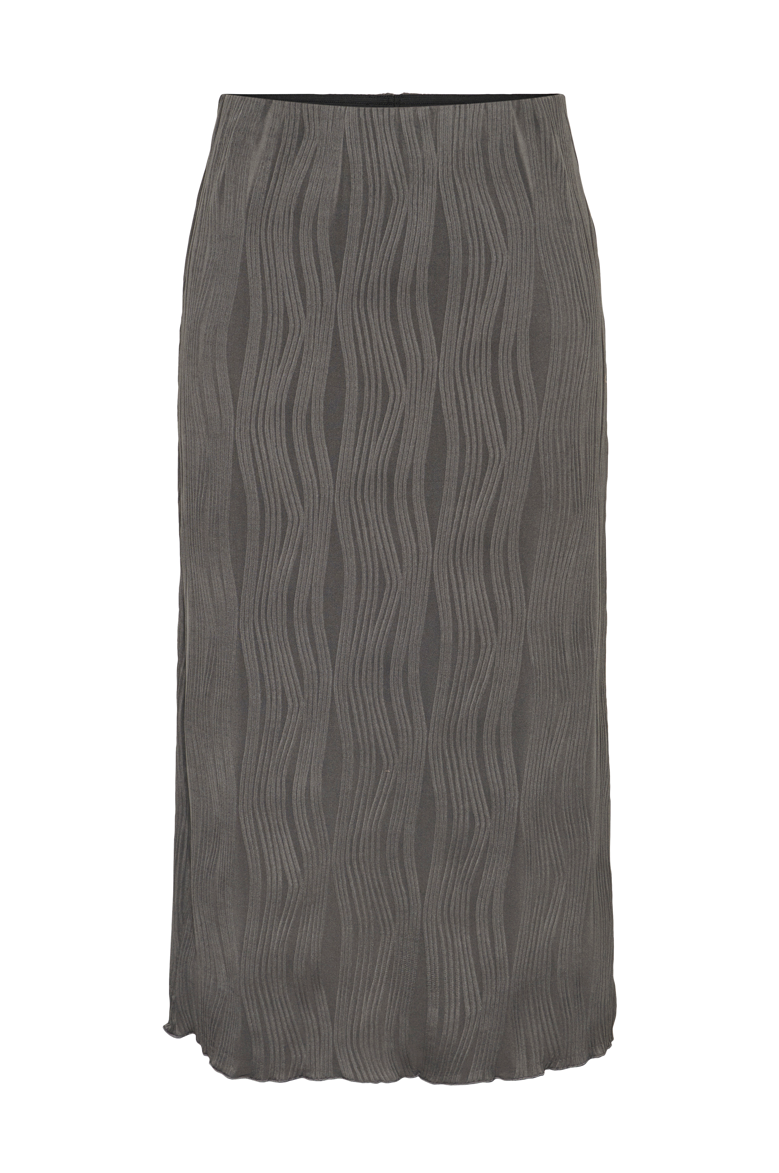 • Mønstervævet model• Indvendigt elastisk bånd på toppen• Slids nede bagved• Bølget søm• Længde: 82 cm i størrelse S