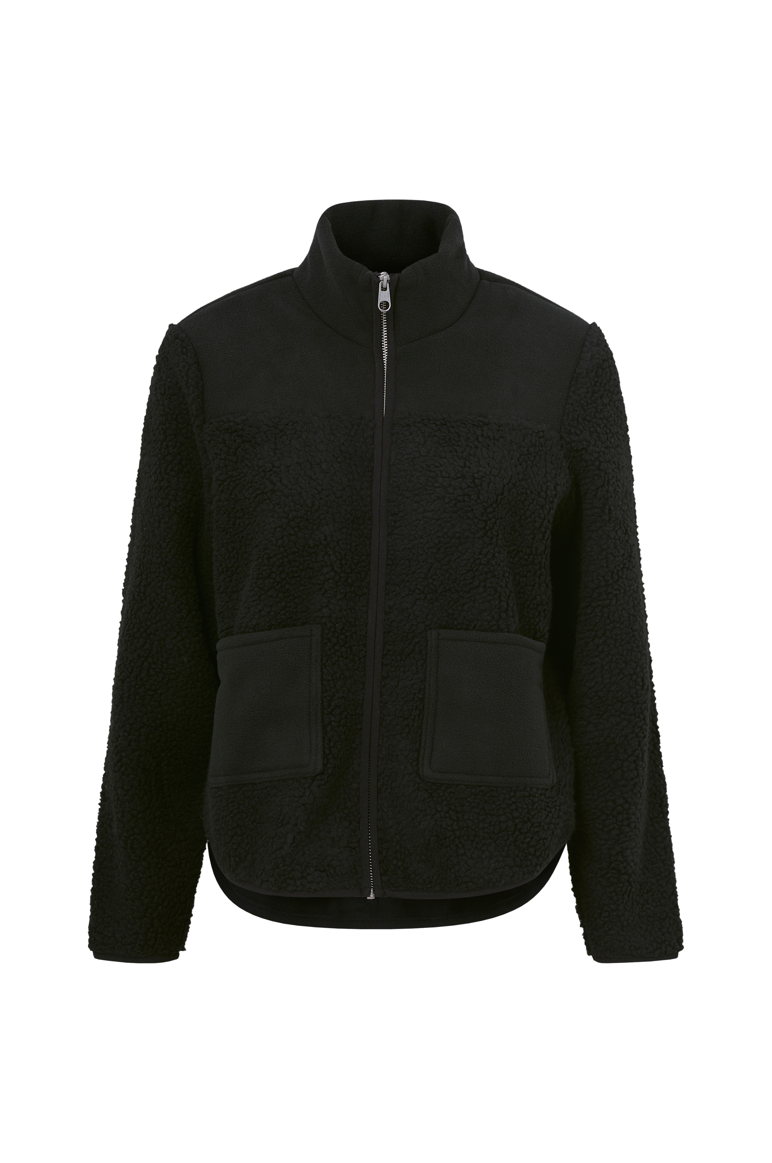 Uforet jakke med lodden plys på ydersiden og glat inderside i blød fleece. Glat, blød fleece på lommer og bærestykke. Lynlås og lommer foran. Beskyttende standkrave. Længde ca. 60 cm i str. S.