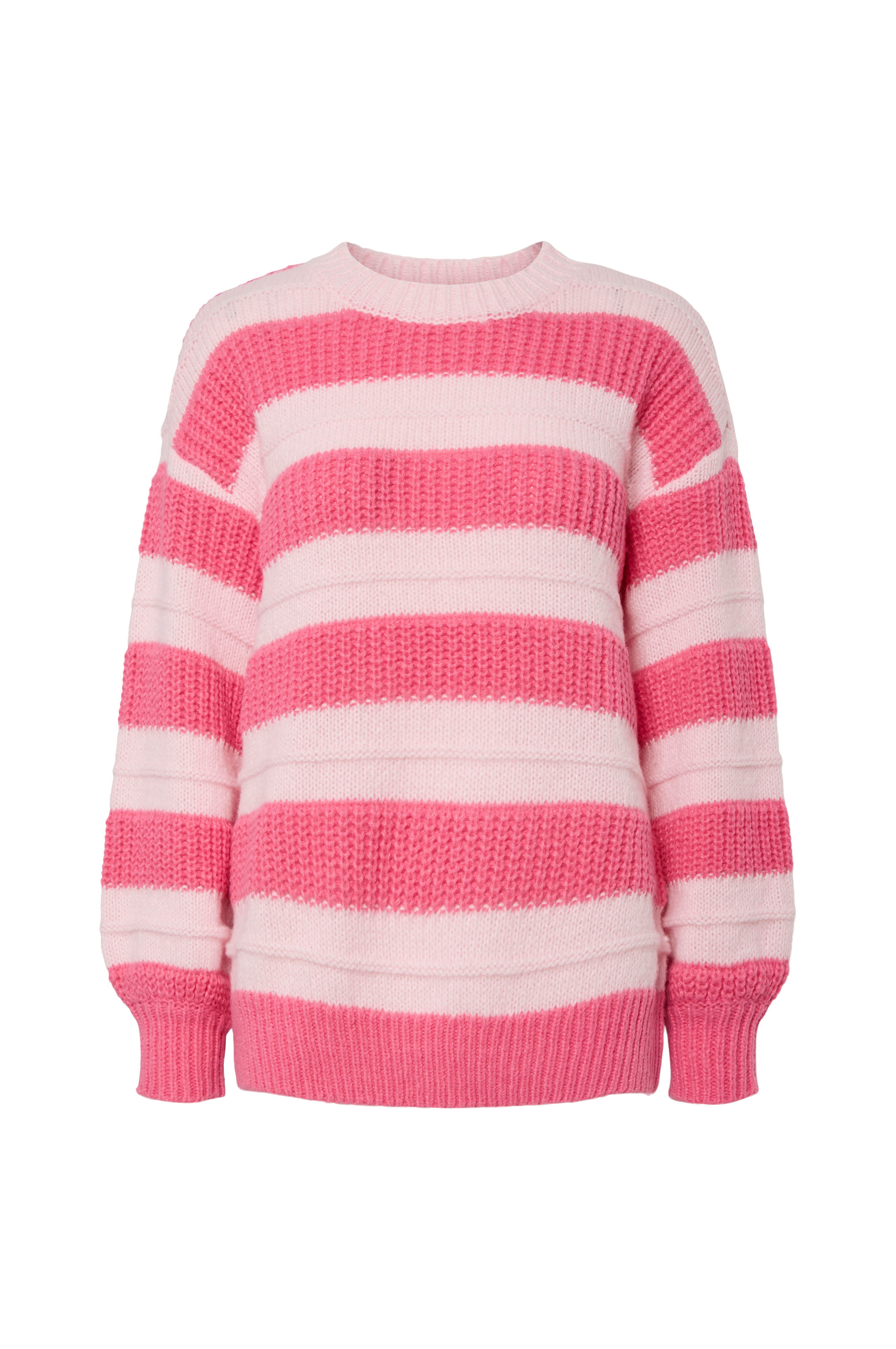 • Strikket Pullover med strukturstriber• Oversize model• Rund halsudskæring• Nedsænkede skuldre• Ribstrik ved manchetterne og nederst