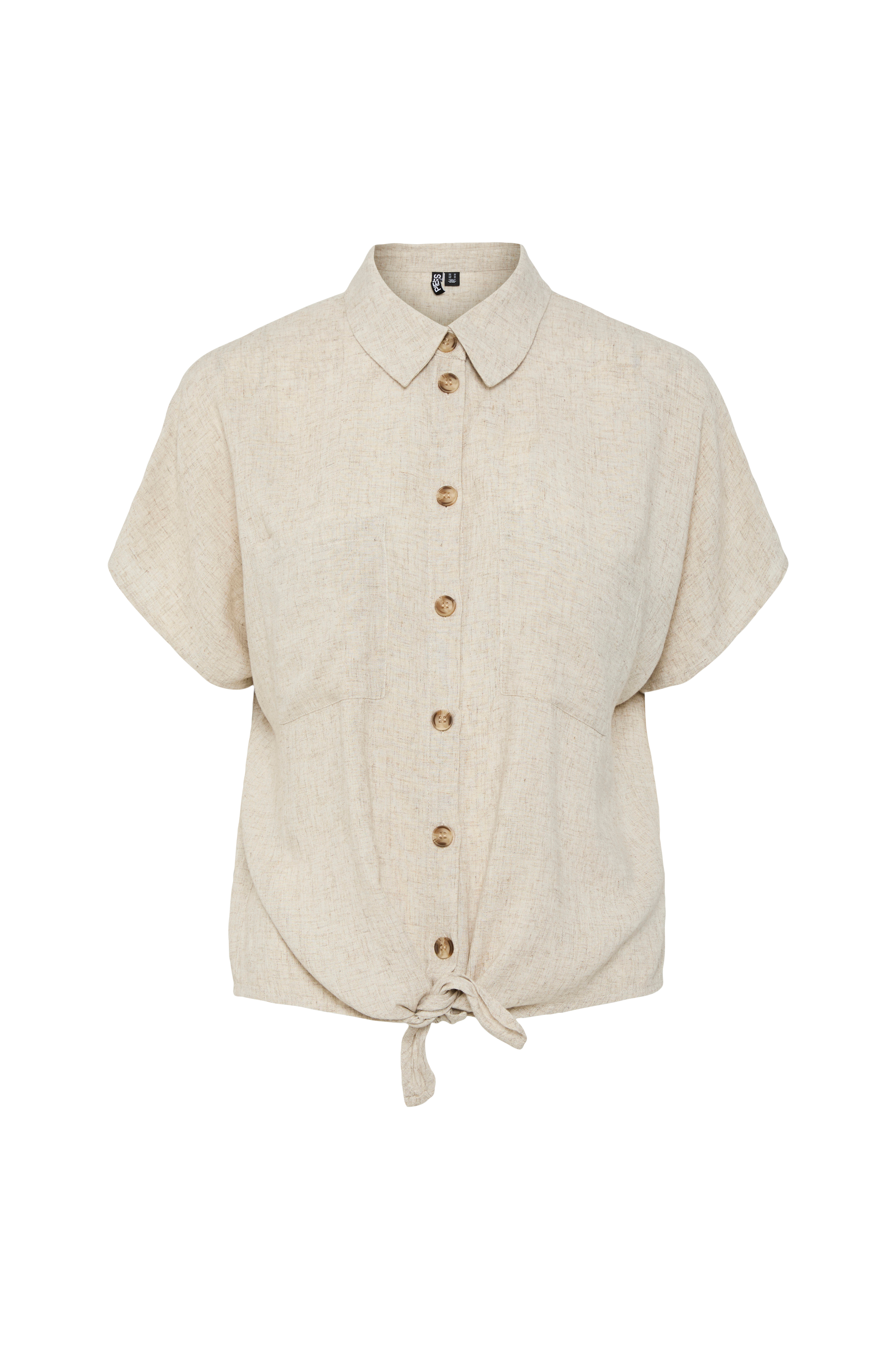 • Kort, bred model med bindbart bånd nede foran• Lille krave• Knapper foran• Brystlommer• Nedsænket skulder med kort ærme