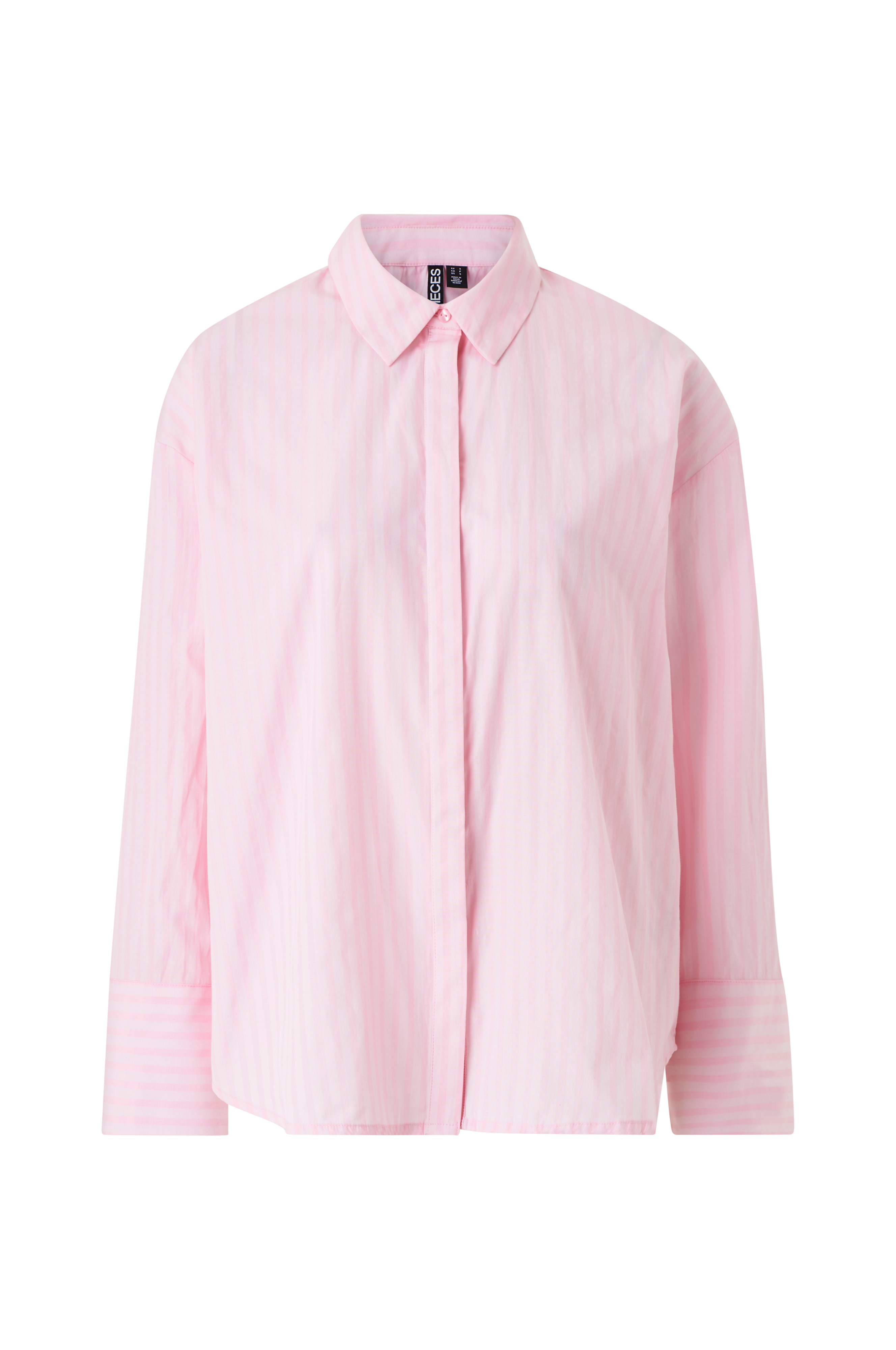 • Lige, uformel model• Skjulte knapper hele vejen frem• Nedsænket skulder• Langt, lige ærme med bred manchet og bindebånd ved ærmeafslutningerne• Afrundet søm
