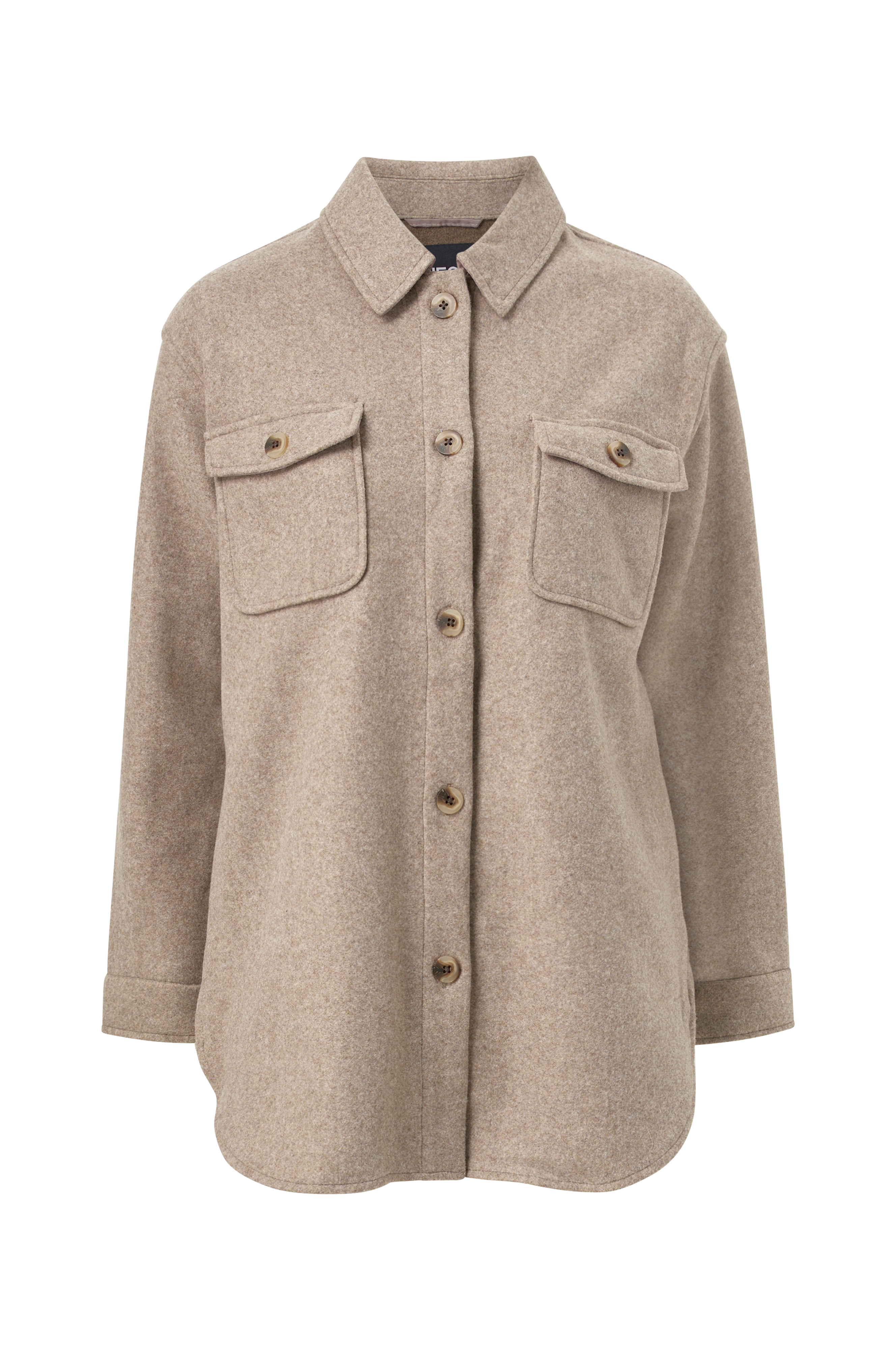 • Lige model i filt • Knapper foran • Brystlommer med låg • Manchet ved manchetterne • Afrundet søm • Længde: 78 cm i størrelse S • Produktet indeholder genindvundet materiale, som genbruges for at reducere mængden af affald samtidigt med at der ikke anvendes nye ressourcer.