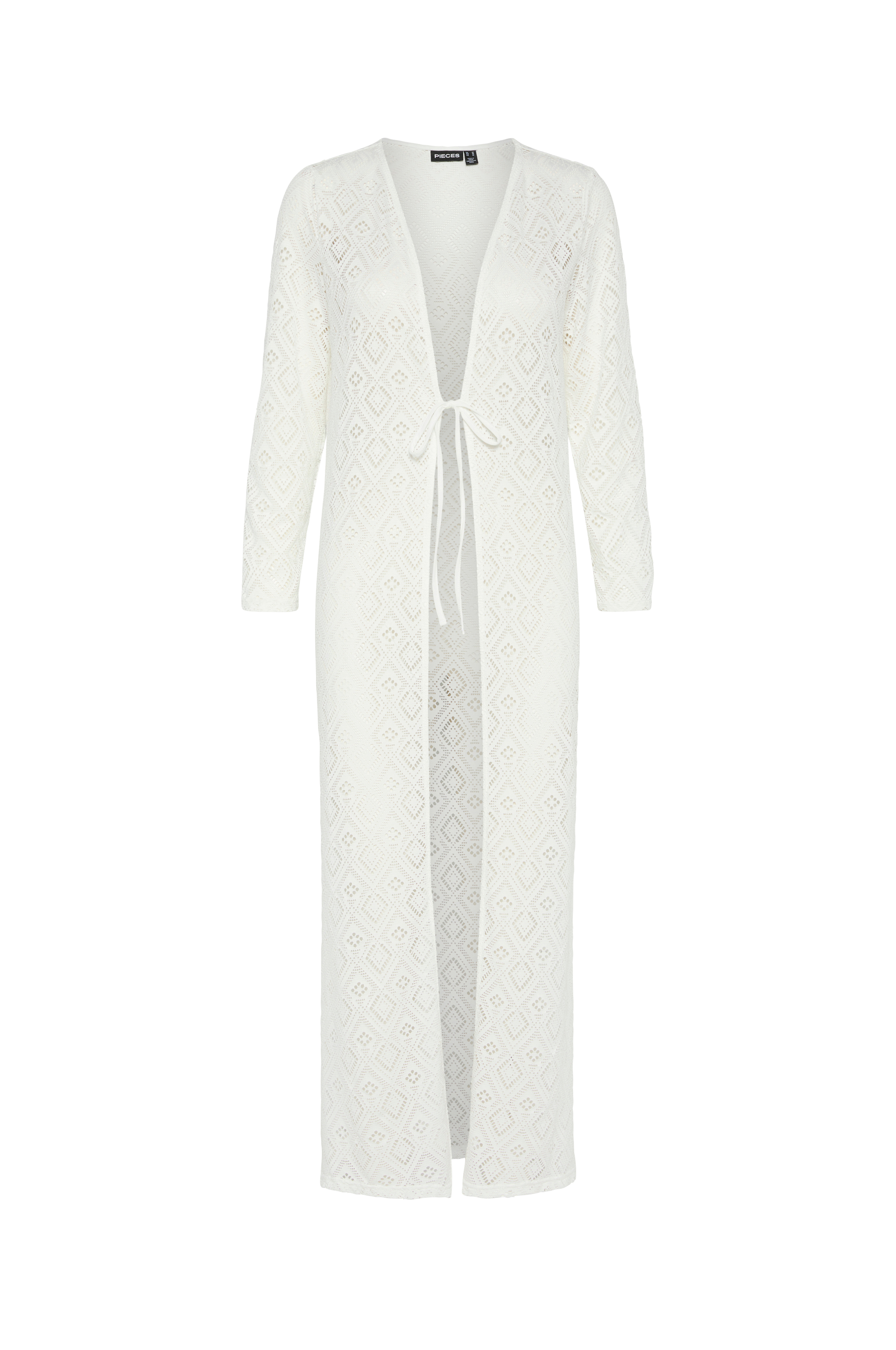 • Lang model i blonde• Dyb v-udskæring• Bindebånd oppe foran• Langt ærme• Slidser nede i siderne