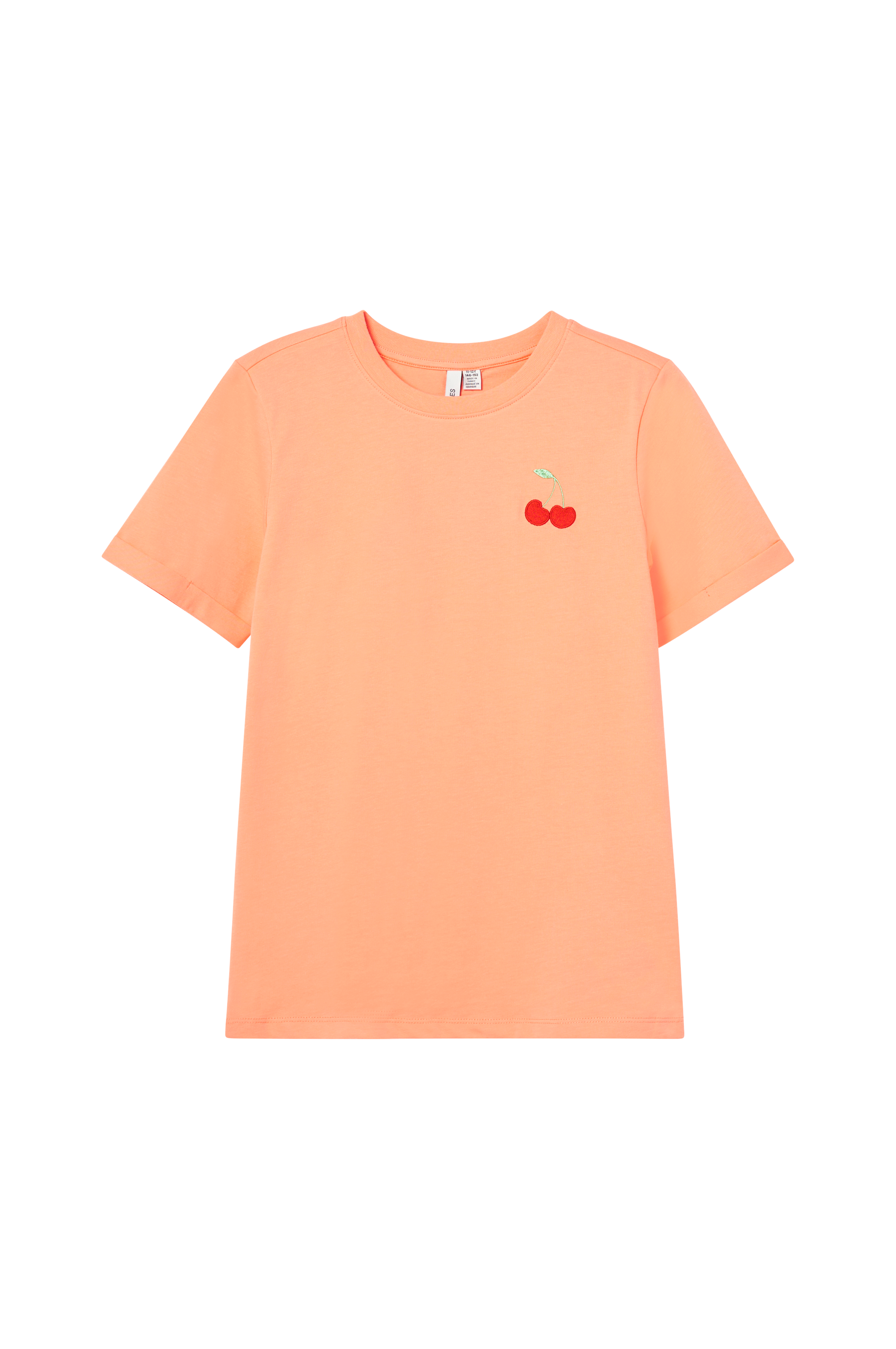 • Korte ærmer med oprullet • Broderi på brystet • Fremstillet af bomuldsjersey • Produktet indeholder økologisk bomuld, som er dyrket uden kemiske sprøjtemidler, kunstgødning og genmodificerede afgrøder (GMO). Dette betyder et sundere arbejdsmiljø for landmænd og bedre jord.