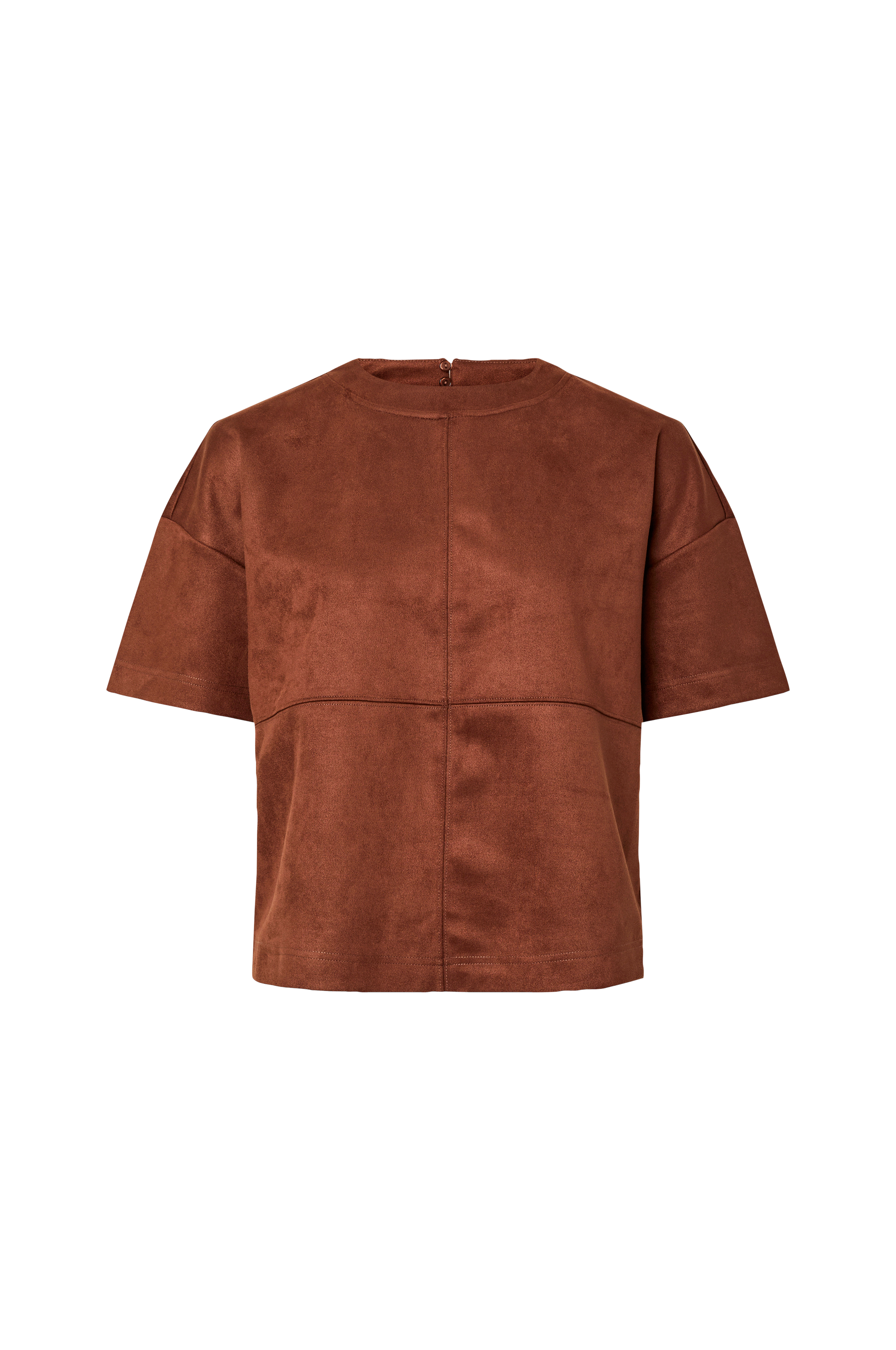• Top i blødt, elastisk ruskindsmateriale• Slids med knapper i nakken• Korte ærmer