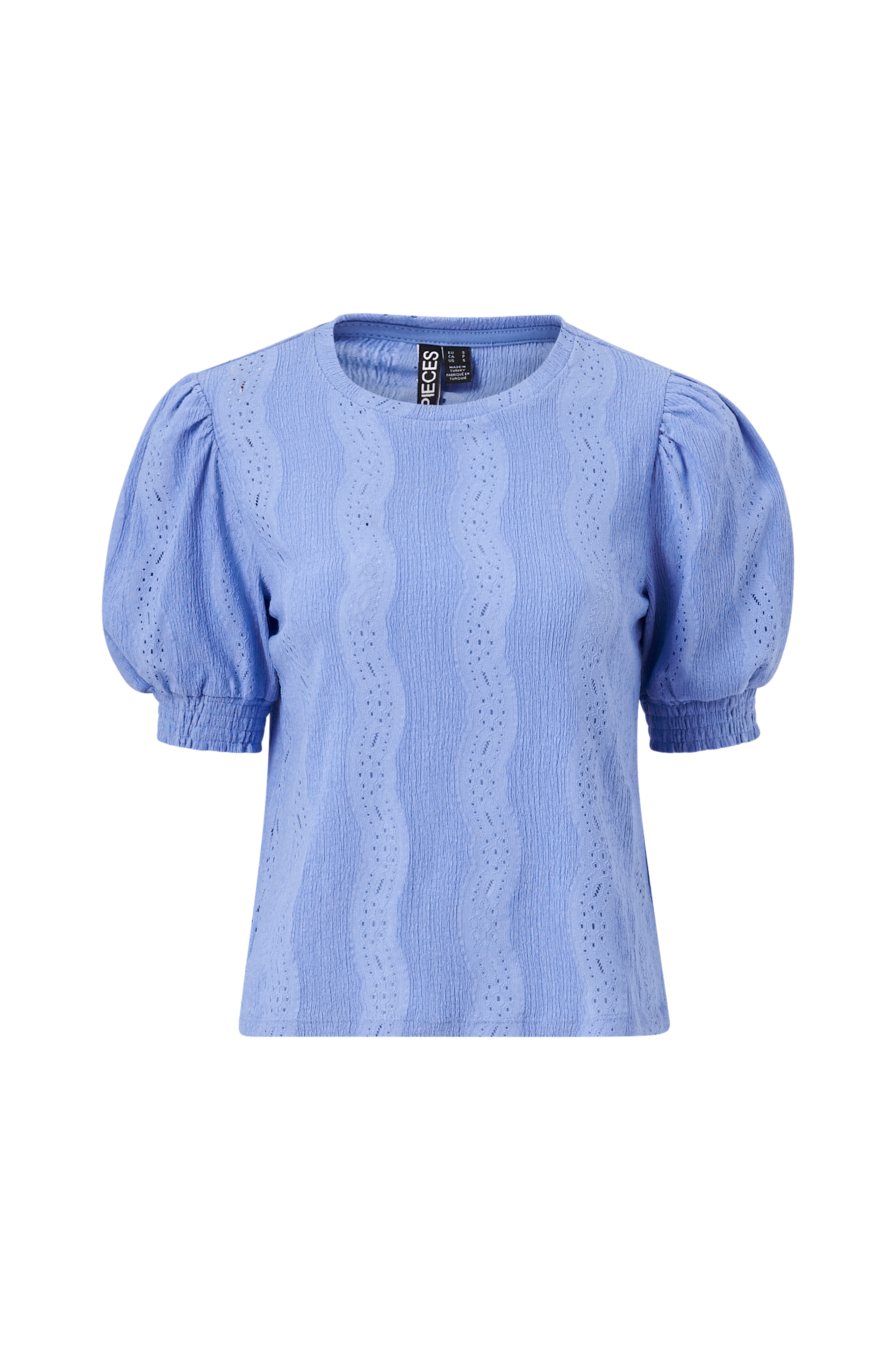 • Korte ballonærmer med smock ved manchetterne• Fremstillet af jersey med hulmønster