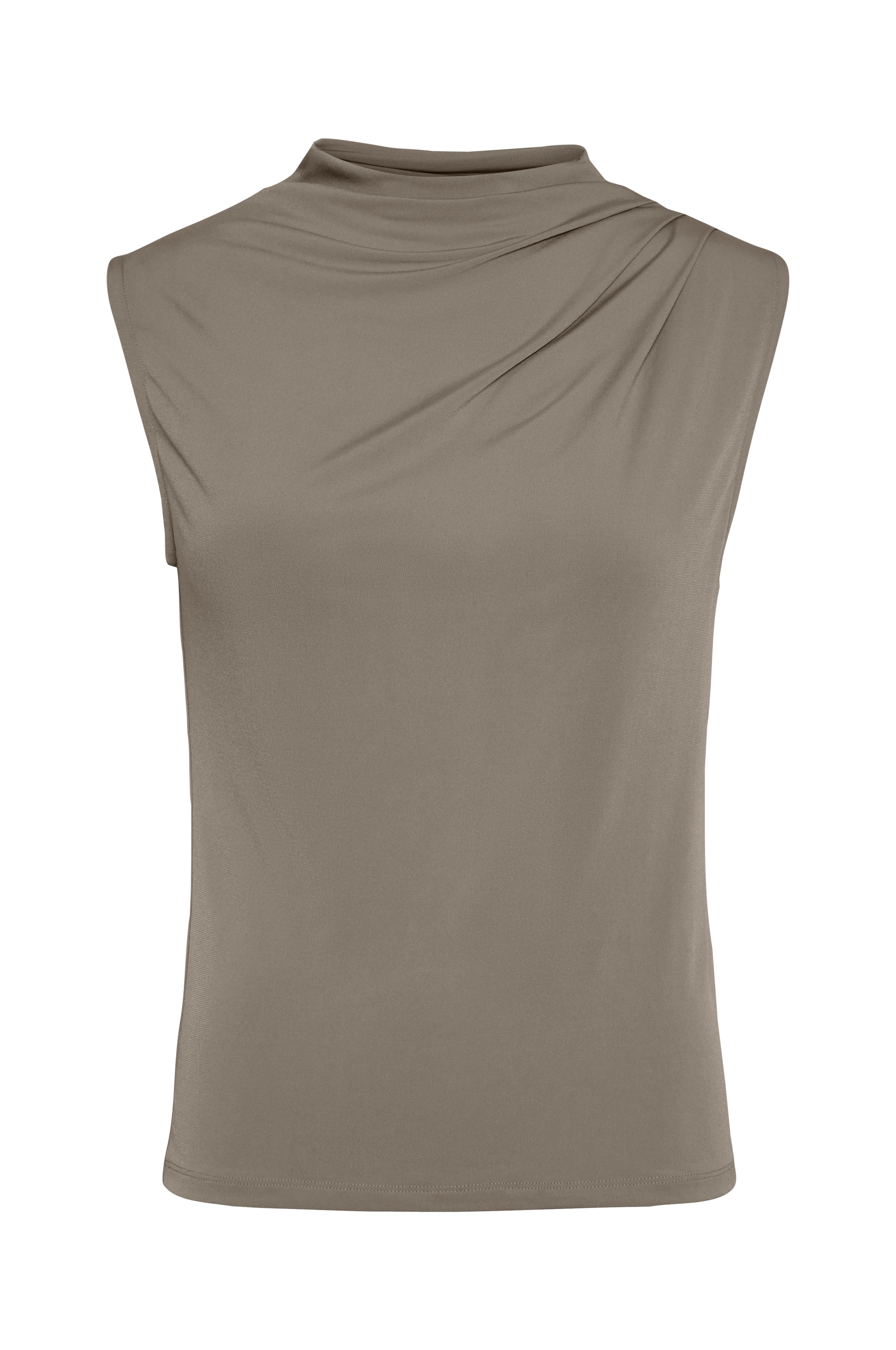 • Ærmeløs, draperet top• Høj halsudskæring• Draperet effekt på skuldrene• Smal pasform