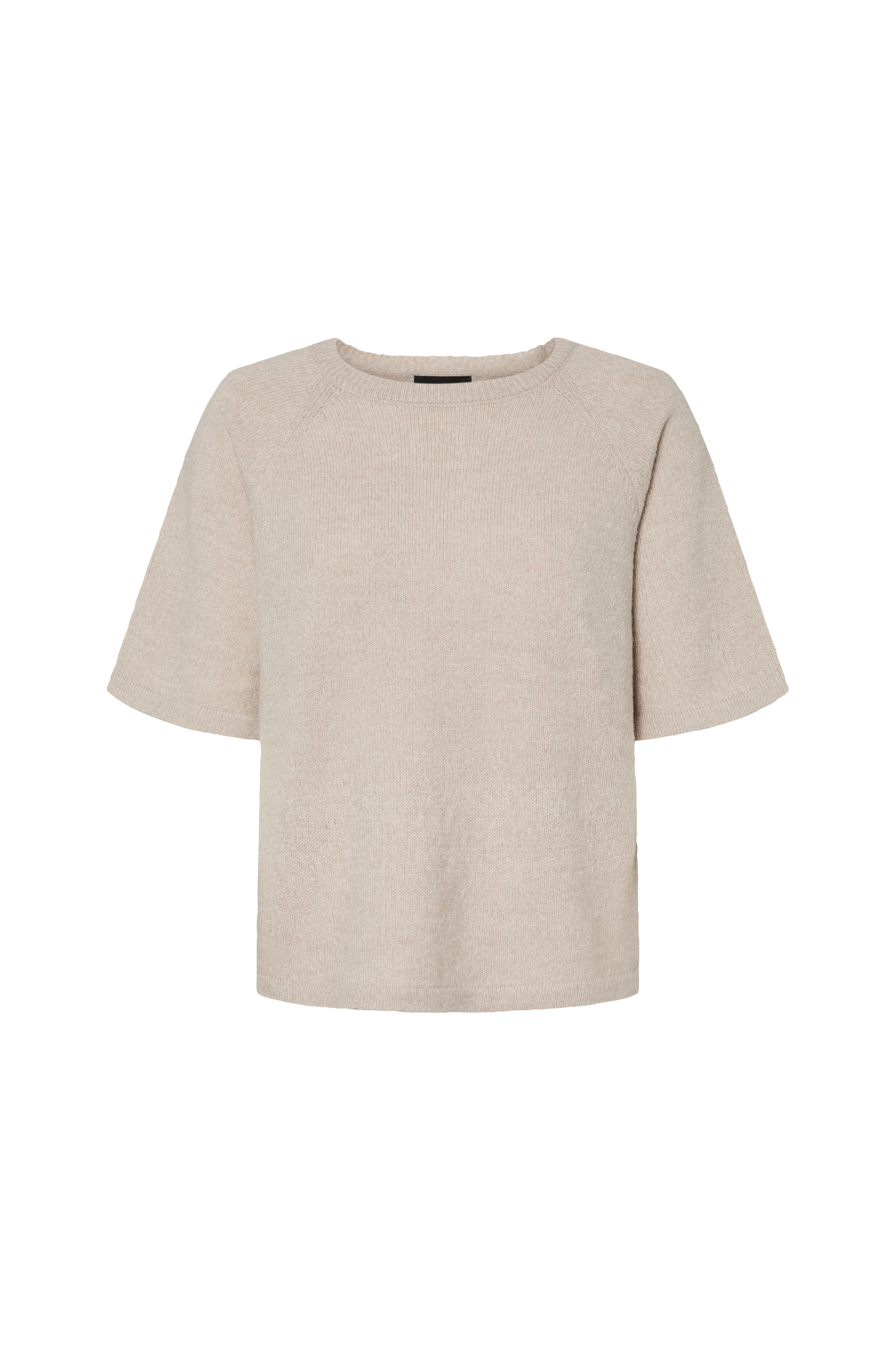 • Lige, fintstrikket model• Halsudskæring med lille ribkant• Kort raglanærme