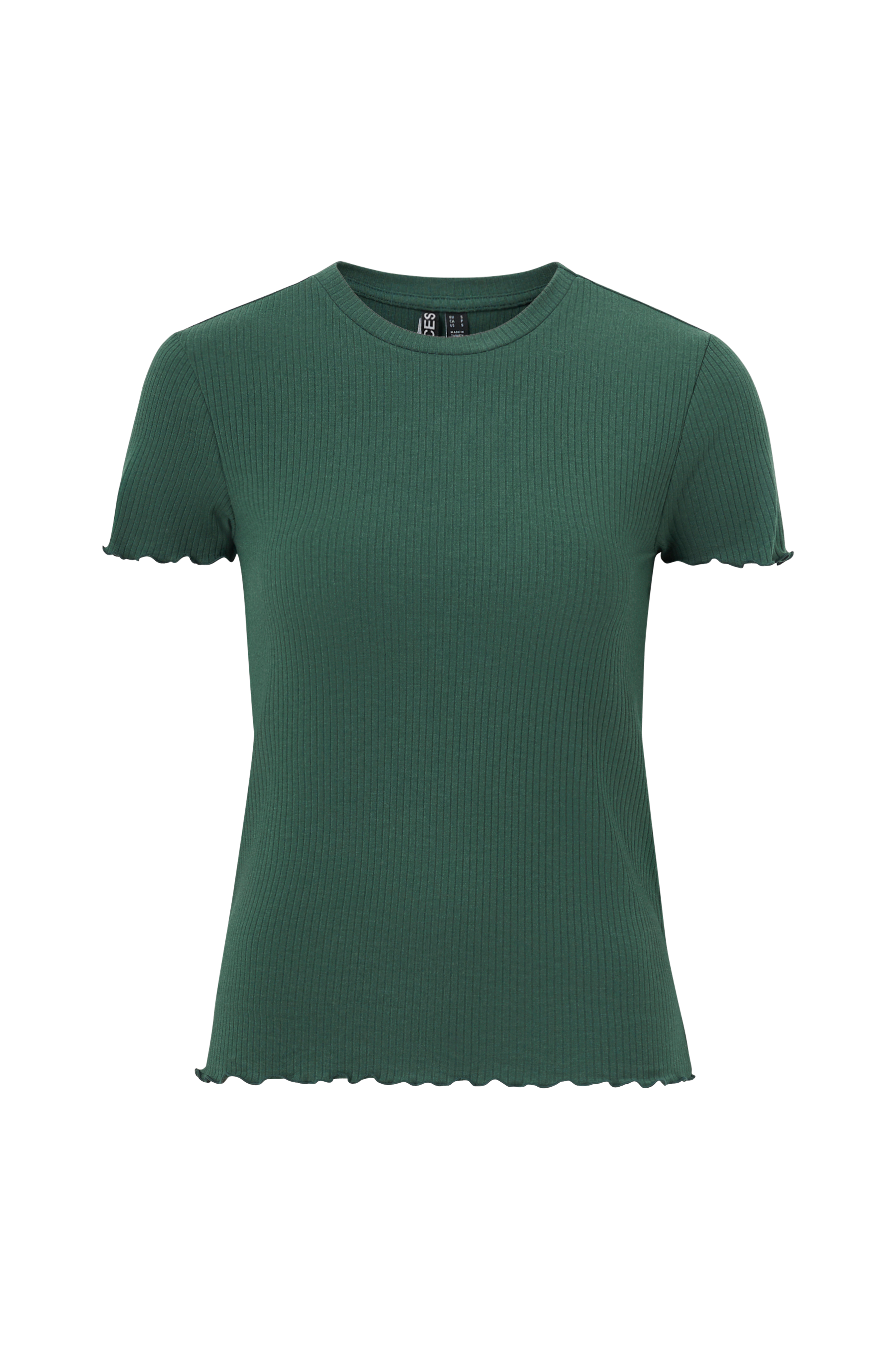 • Ribbet top• Korte ærmer• Bølget kant ved manchetterne og nederst