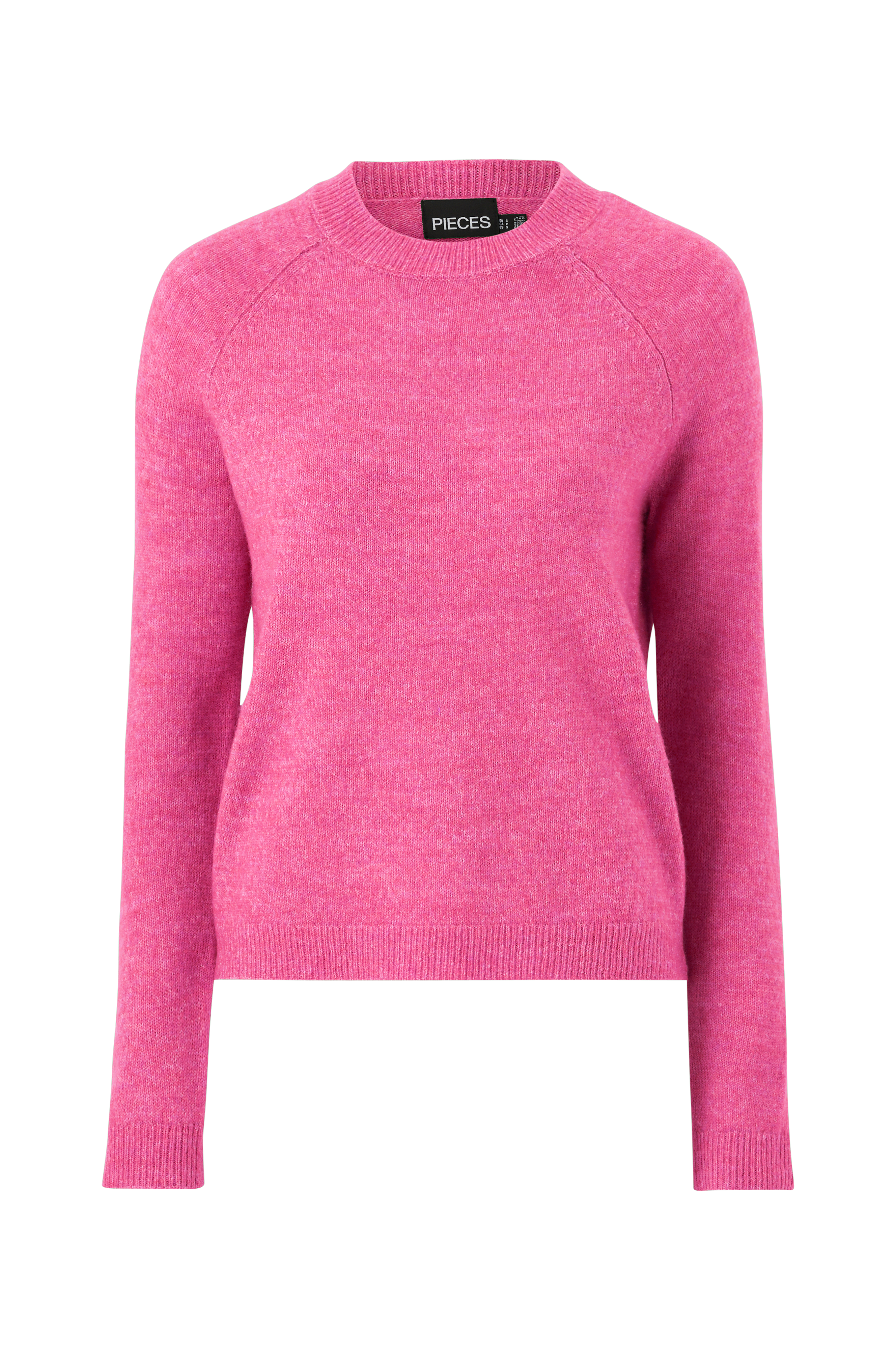 • Blød, strikket trøje• Ribstrikket halsudskæring• Raglanærmer