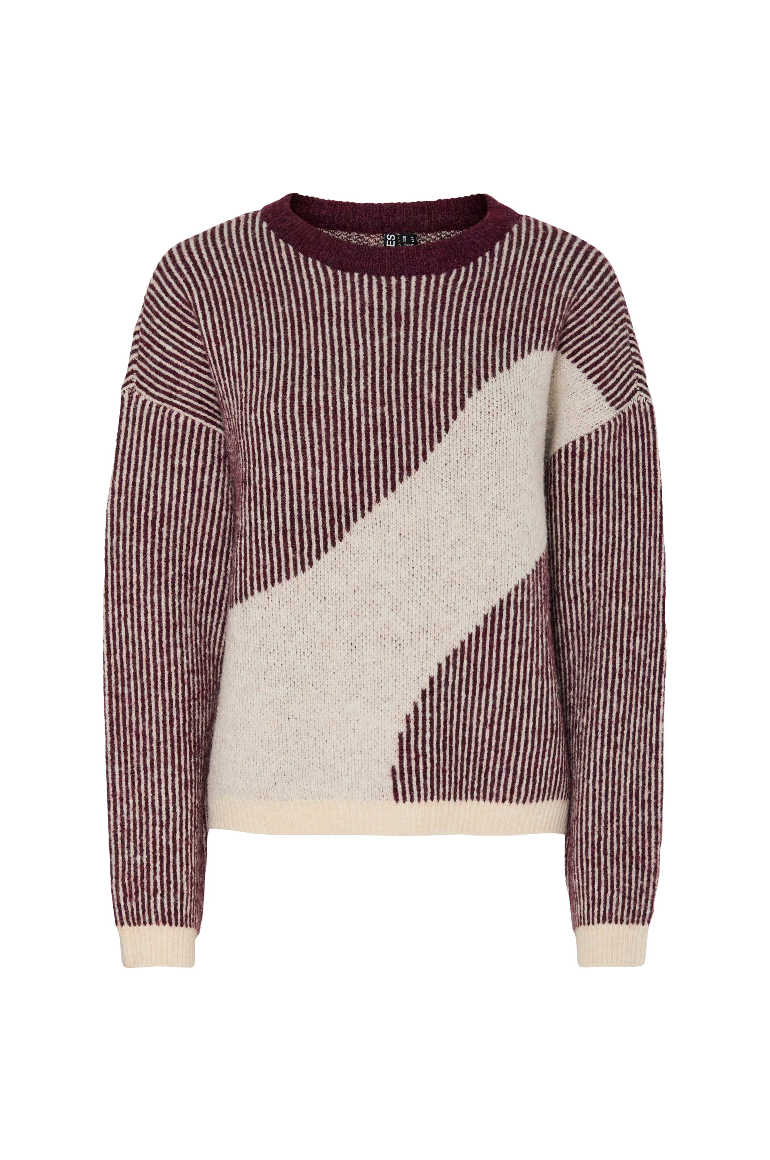 • Mønstret, strikket trøje• Rund, ribstrikket halsudskæring• Ribstrik ved manchetterne og ved nederste kant