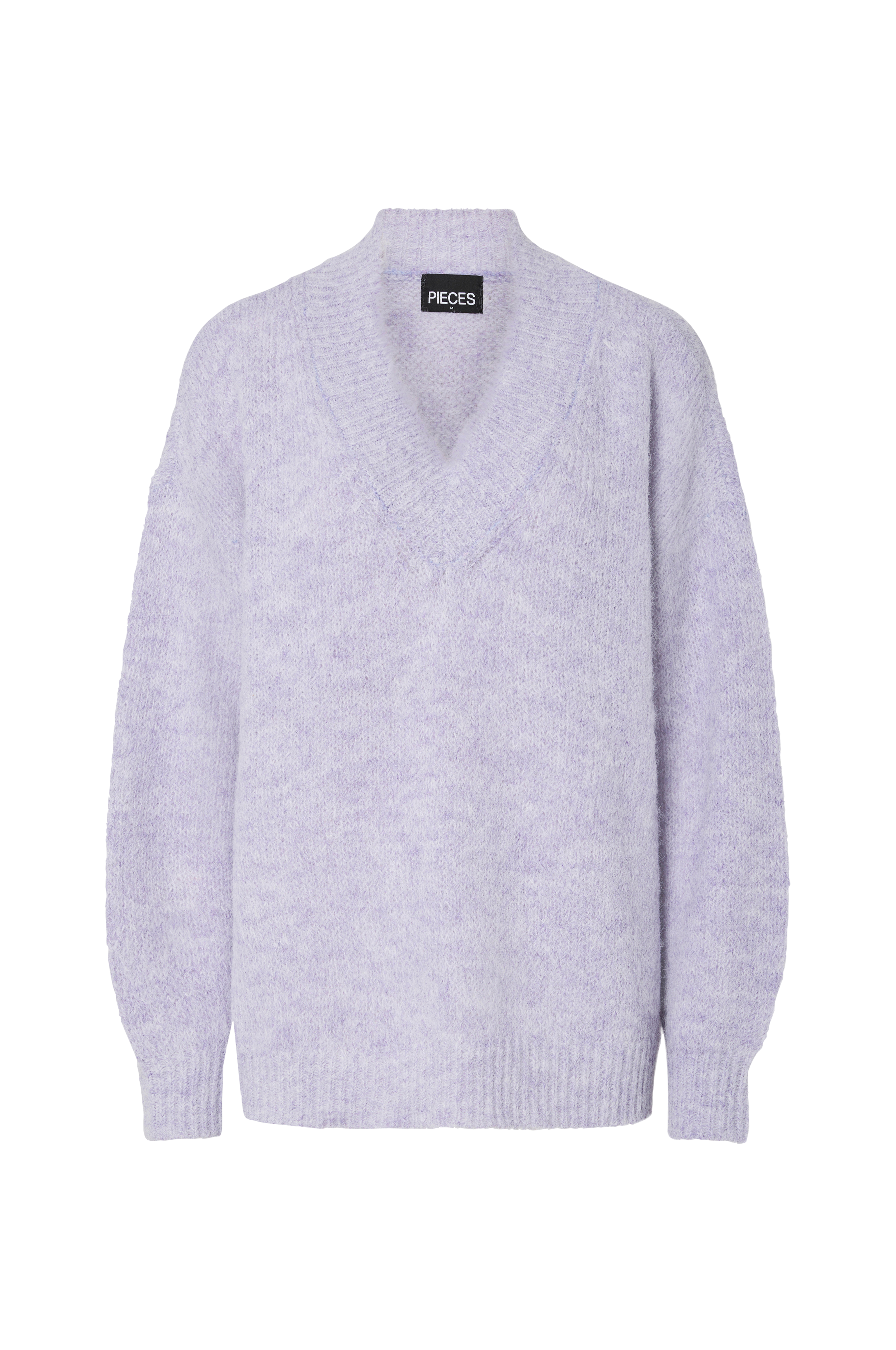 • Strikket trøje i blød uldmiks• V-formet halsudskæring med bred ribstrik hele vejen rundt• Nedsænkede skuldre• Ribstrik ved manchetterne og nederst