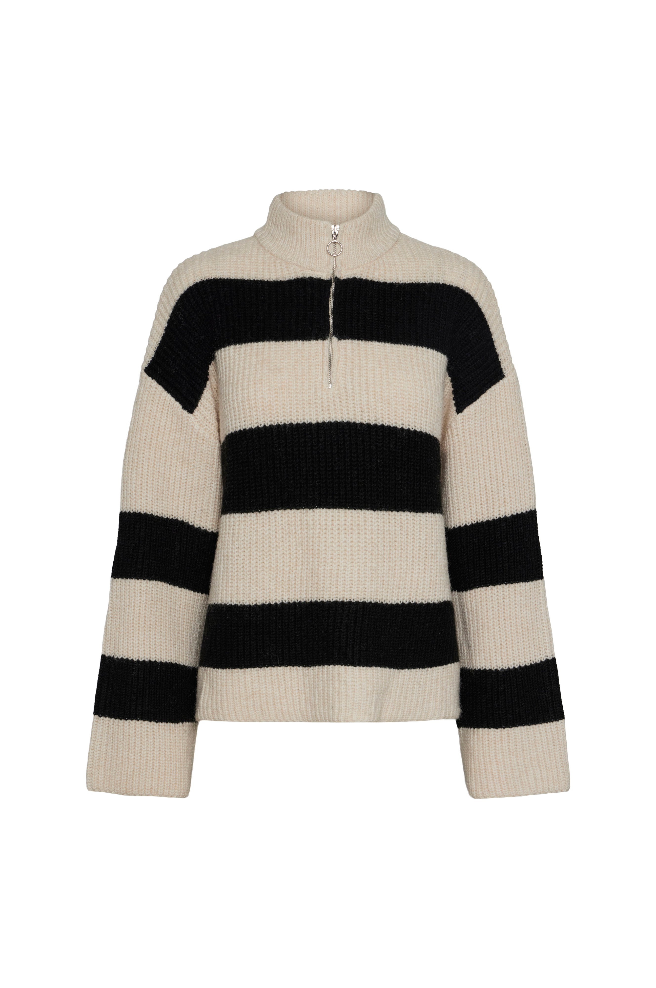 • Strikket trøje• Høj, ribbet halsudskæring med kort lynlås