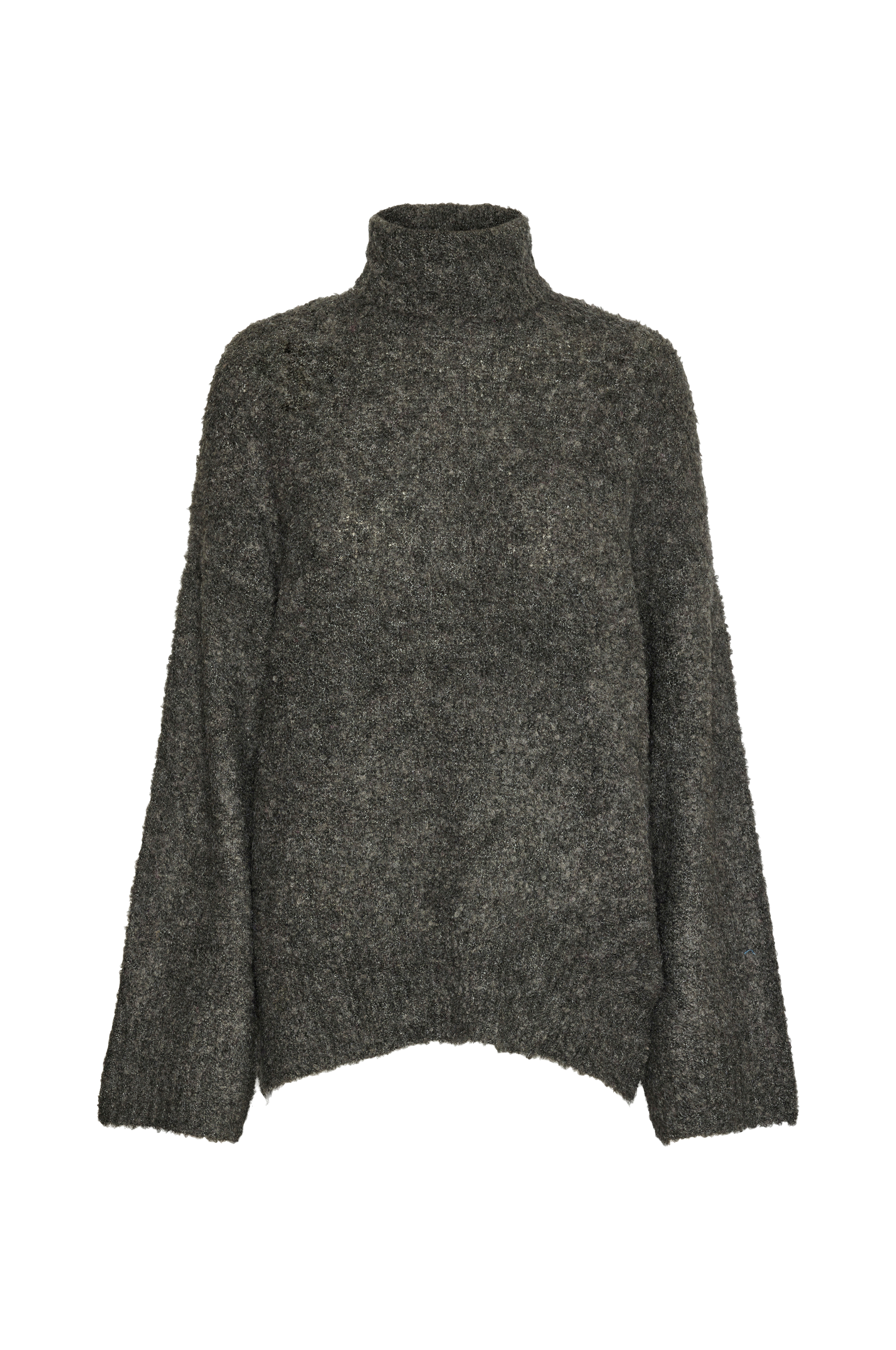 • Blød, strikket trøje i uldblanding• Elastisk kvalitet• Turtleneck• Nedsænkede skuldre