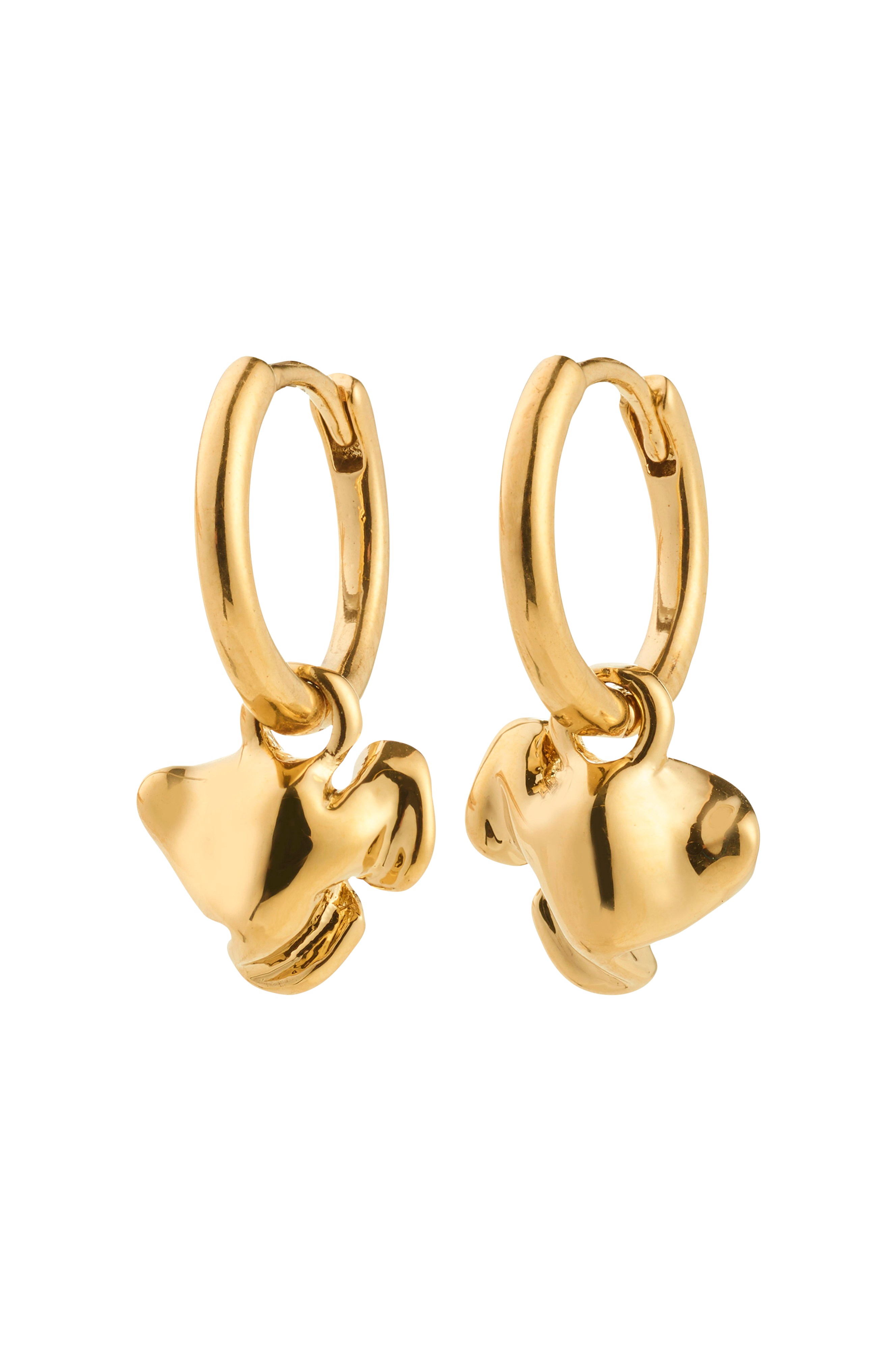 Ubesværet elegance! Guldbelagte hoops med abstrakte blomstervedhæng - de bliver dine nye favoritter til et ubesværet look. Brug de organiske vedhæng for at få en luksuriøs boho-stemning, eller fjern blomsterne for at få et rent, minimalistisk look med en klassisk huggie hoop - du bestemmer selv stemningen. Perfekt sammen med efterårets store blazere og chunky loafers for et strejf af stille luksus med et sødt twist. De brugervenlige kliklåse gør disse øreringe enkle og praktiske at have på. Og gæt engang - de er lavet af 99% genbrugsmateriale. Det er mode med omtanke.