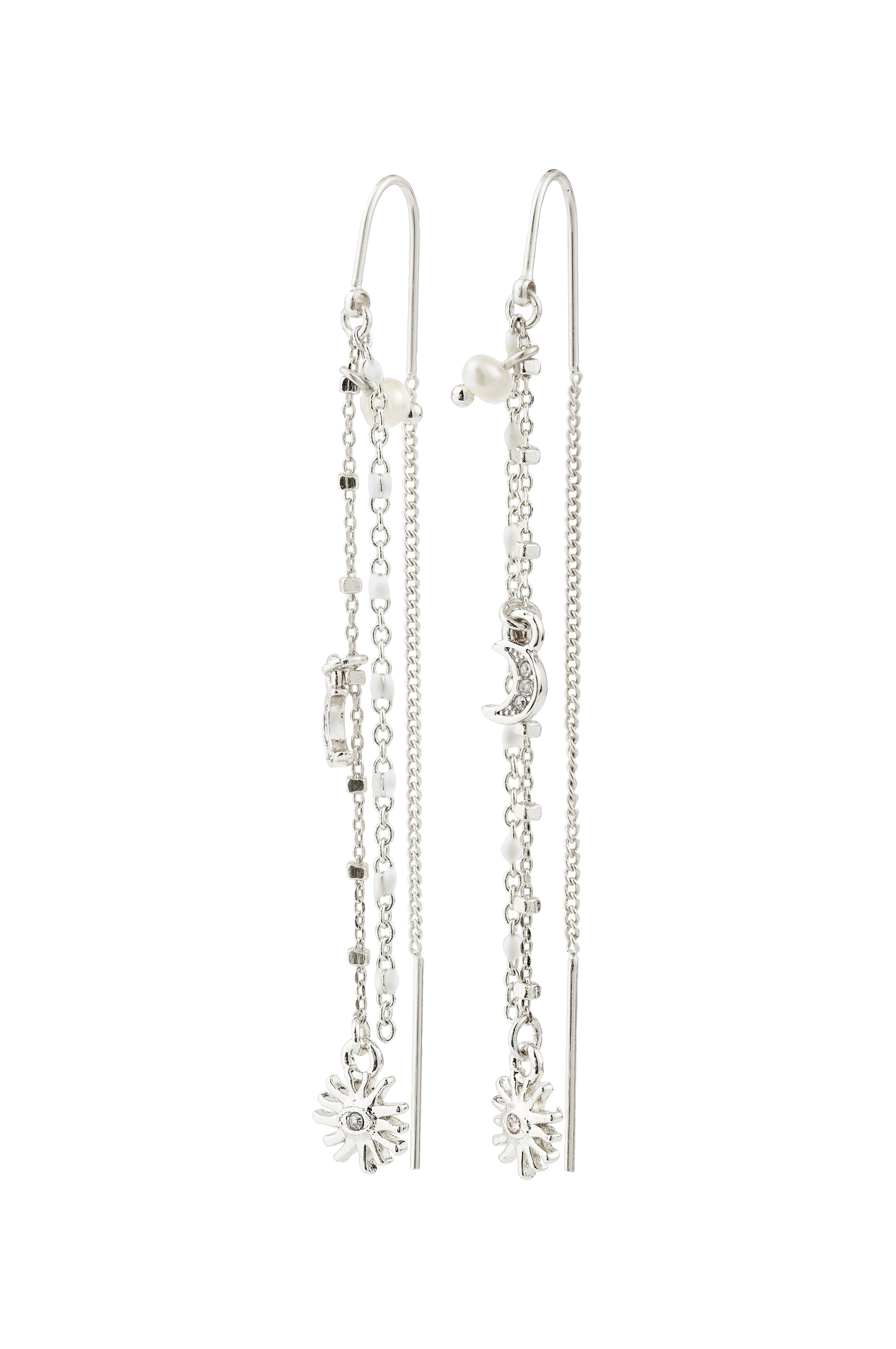 • Sølvbelagte øreringe med hængende kæder• Dekorative vedhæng