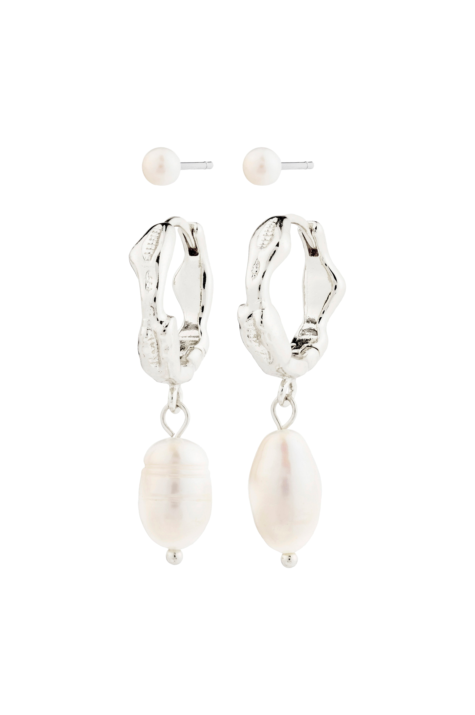 • 2 pare, sølvbelagte øreringe• Dekorative ferskvandsperler