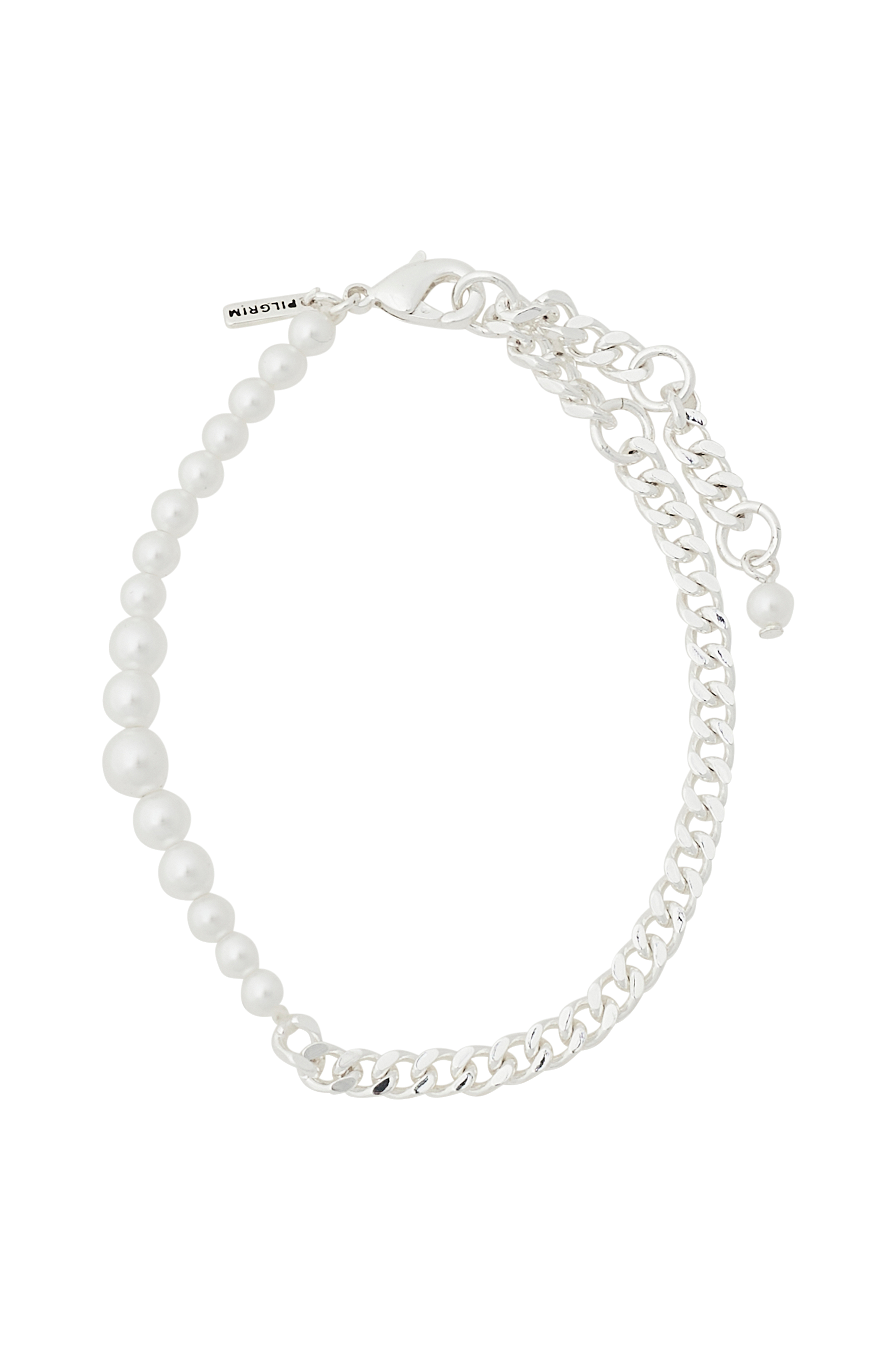 Klassiskhed går aldrig af mode! Det sølvbelagte Relando armbånd fra Pilgrims Classic Collection er et elegant key item i et klassisk design. Hvide glasperler giver en let og romantisk fornemmelse, kombineret med en kraftig kæde, der giver attitude og en urban kant. En superstilfuld kombination, der signalerer klasse og stjernekvalitet. Armbåndet måler 16,5 cm + 3 cm forlængerkæde.