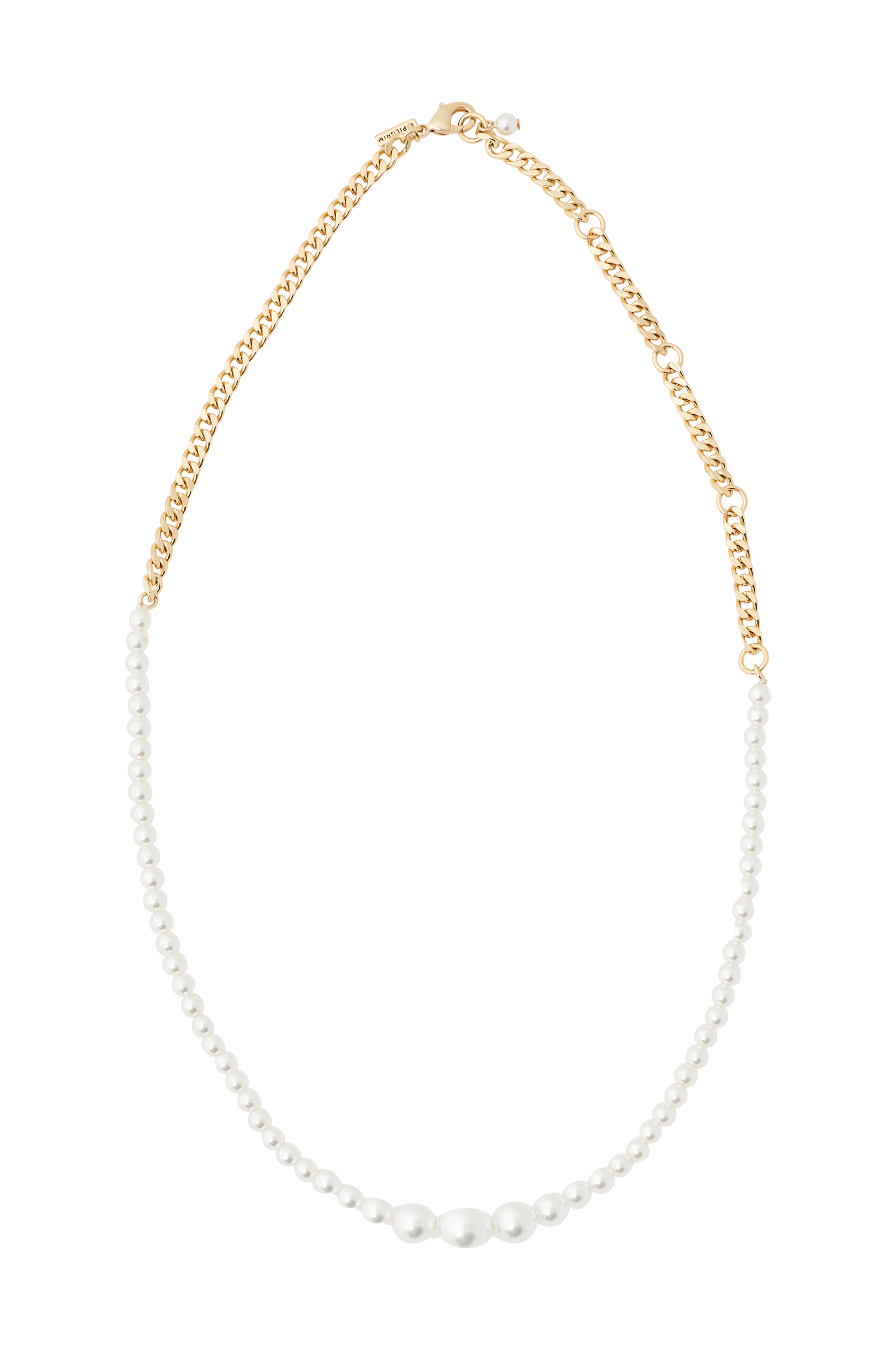 Evigt elegant! Den guldbelagte Relando perlekæde fra Pilgrims Classic-kollektion er et elegant pragteksemplar i et klassisk design. Hvide glasperler i forskellige størrelser giver en let og romantisk fornemmelse, kombineret med en chunky kæde, der giver attitude og en urban kant. Et nøgleelement i en superstilfuld kombination, som er et must-have denne sæson. Kæden måler 38 cm + 12 cm forlængerkæde.