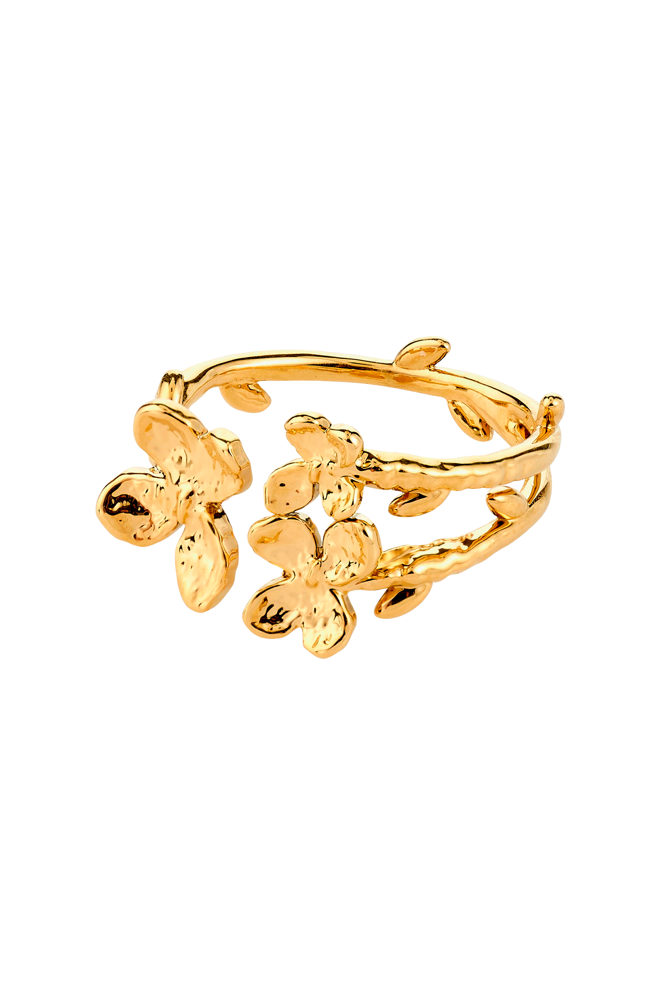• Guldbelagt ring med dekorative blomster• Justérbart design
