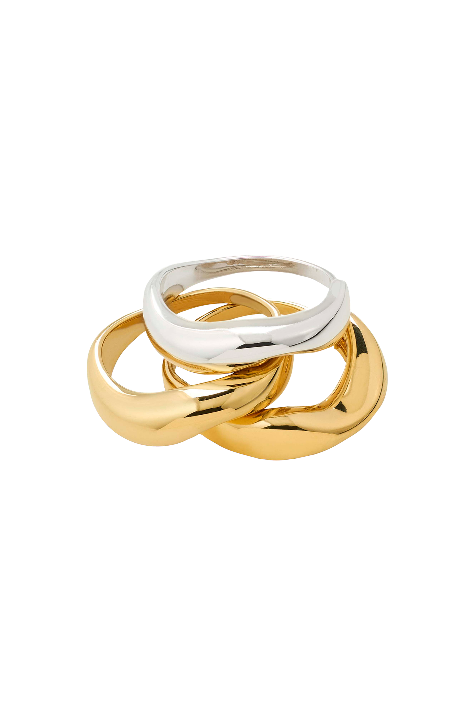 • Tre justérbare ringe• To guldbelagte ringe• En sølvbelagt ring