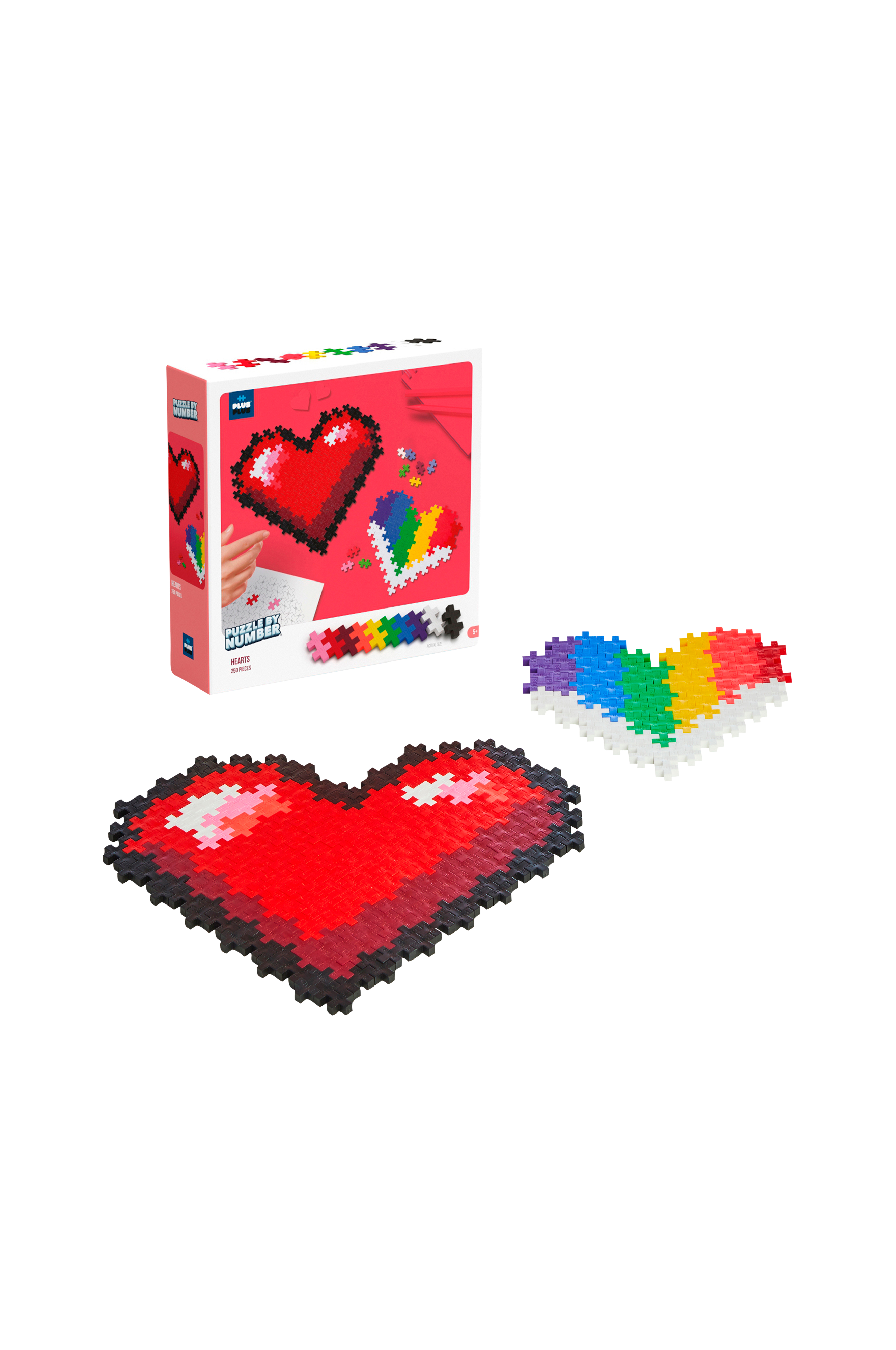 Puslespil med 250 brikker - lav to store, farverige hjerter i et 2-dimensionelt mønster.Match tal og farve, og se, hvordan din kreation vokser frem - uden lim eller strygejern.