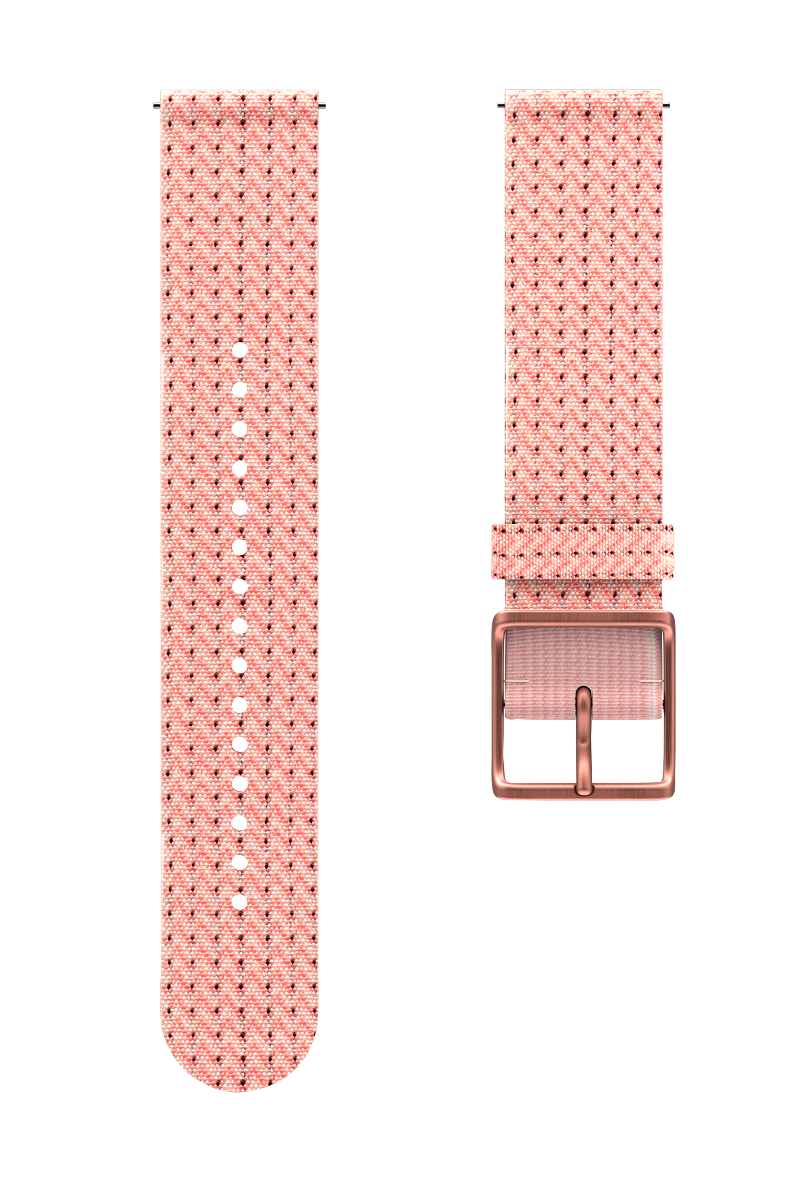 Remmen er fremstillet af genindvundet PET-garn. Den elastiske del under spændet betyder, at remmen sidder sikkert og behageligt rundt om håndleddet.