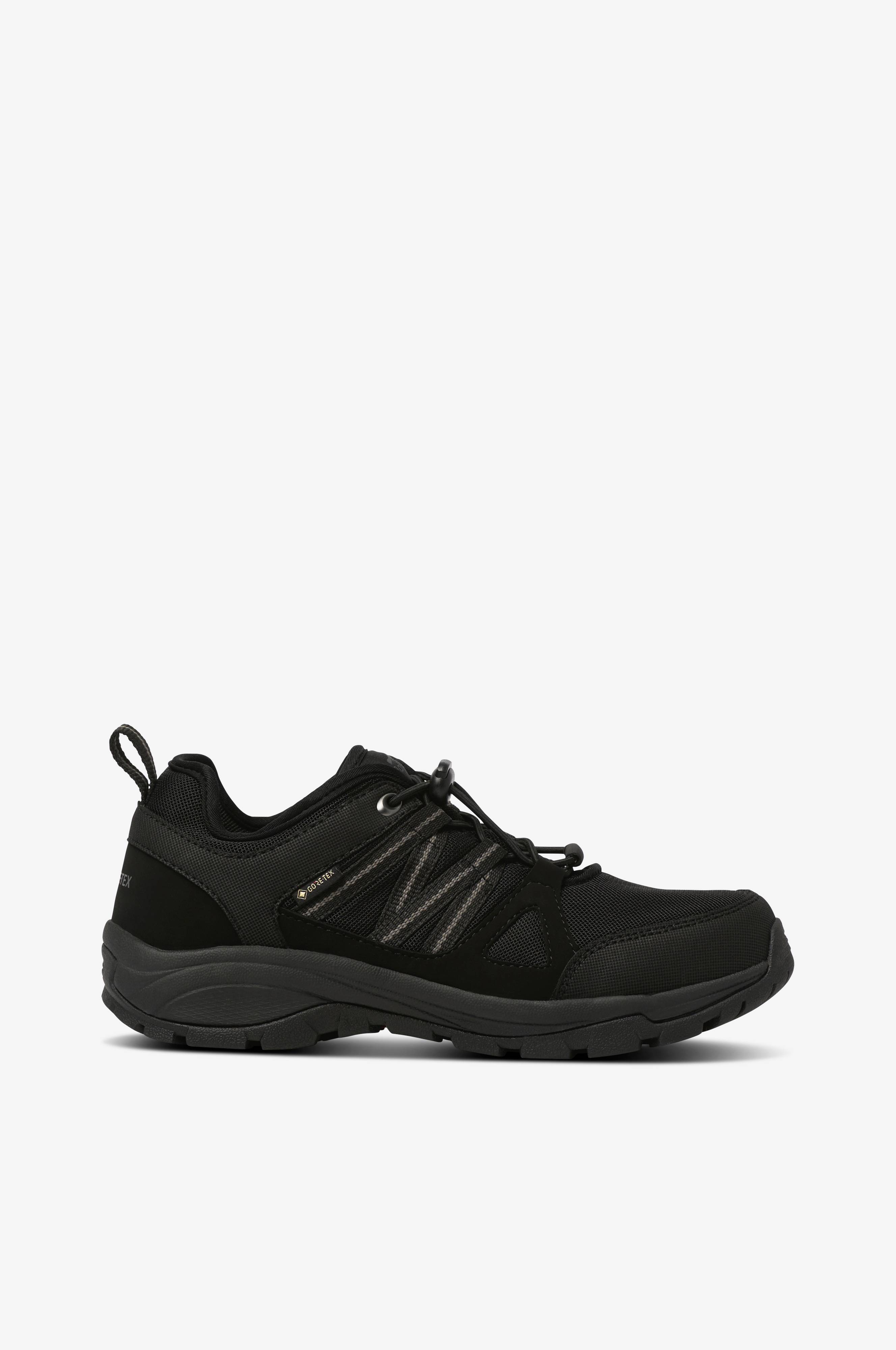 Vandtætte walkingsko i mesh og PU med Gore-Tex-memban som gør skoene vandtætte og samtidigt åndbare. Pløs og åbning er behageligt vatterede. Udtagelig indersål. Grebssikker, robust ydersål i Pylon-gummi.