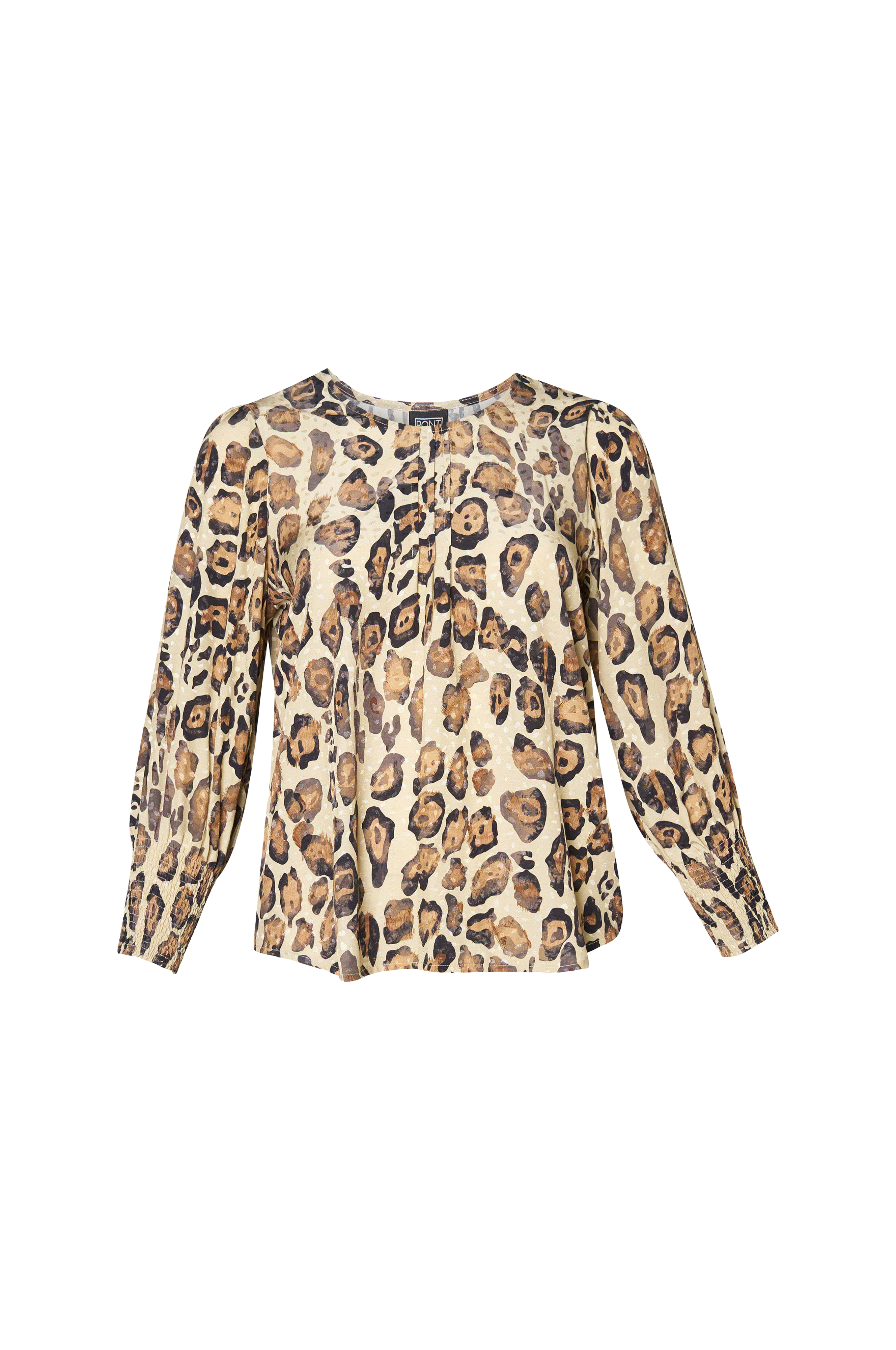 • Leopardmønstret bluse i viskose• Rund halsudskæring• Lange ærmer med smock ved manchetterne• Store størrelser