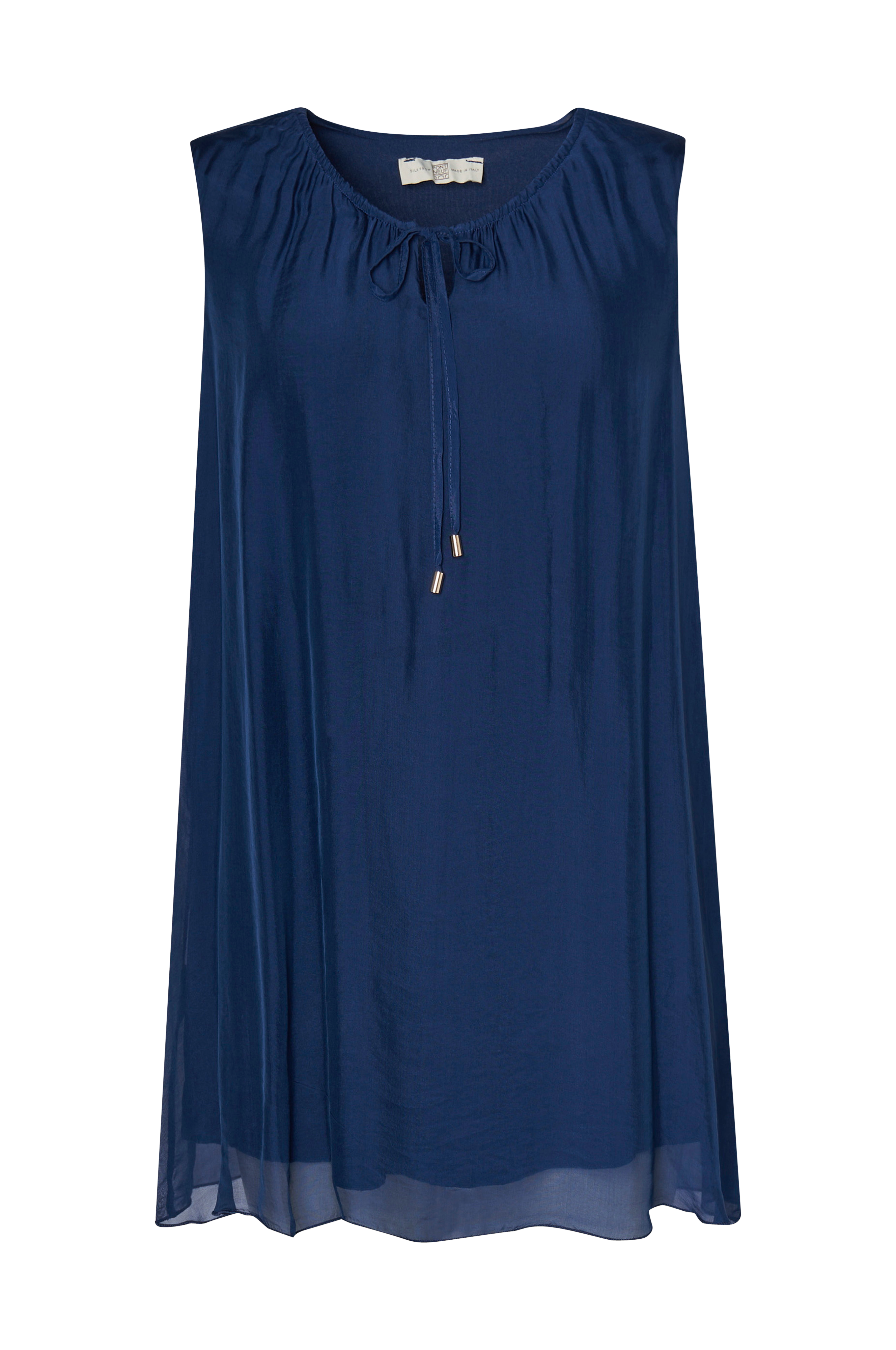 • Ærmeløs bluse i silkemiks• Lidt længere model• Bindebånd i halsen• Trikotfor