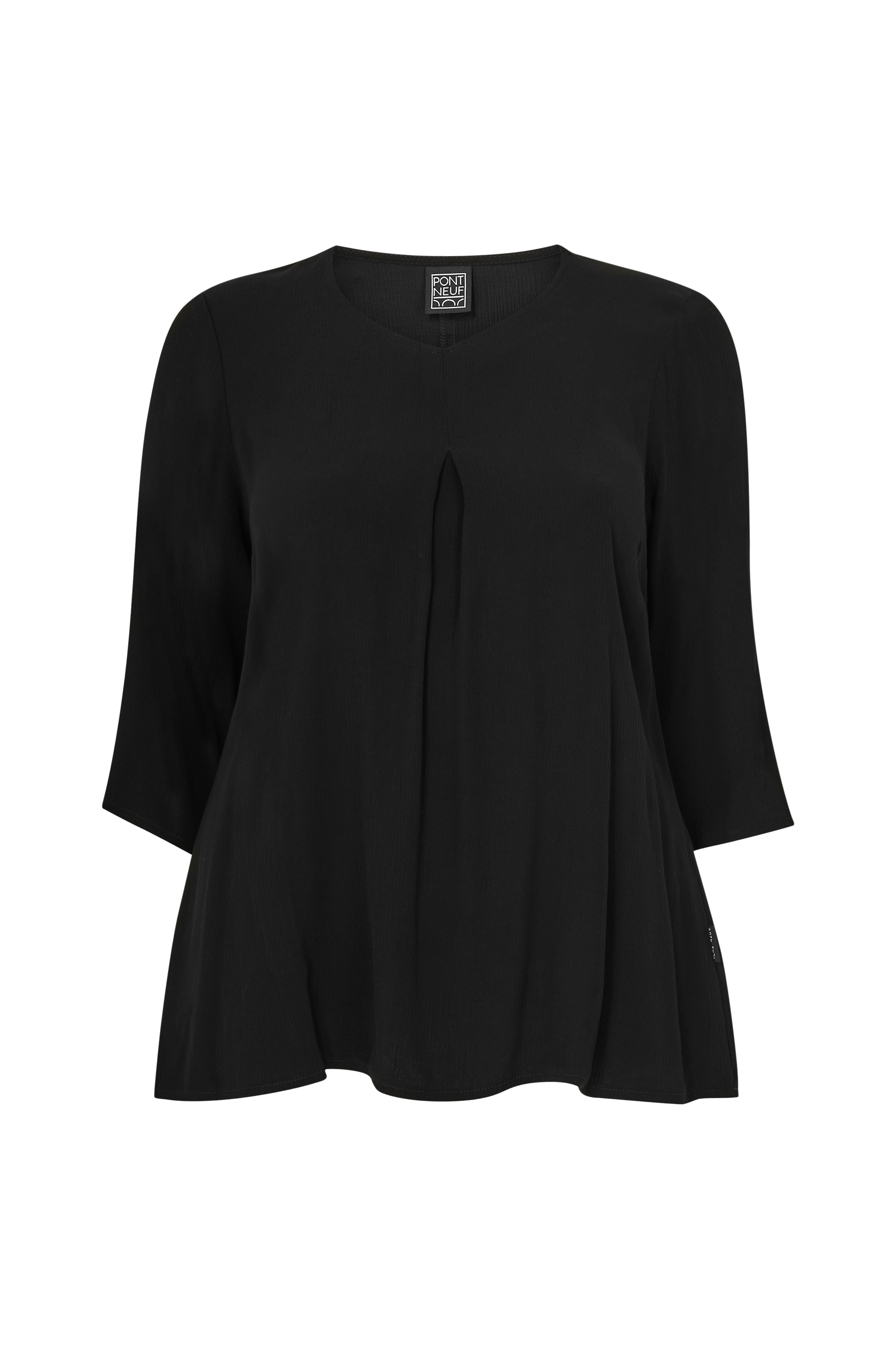 • Model med svaj i crepe• V-hals• Bokslæg på brystet• 3/4 langt, lige ærme