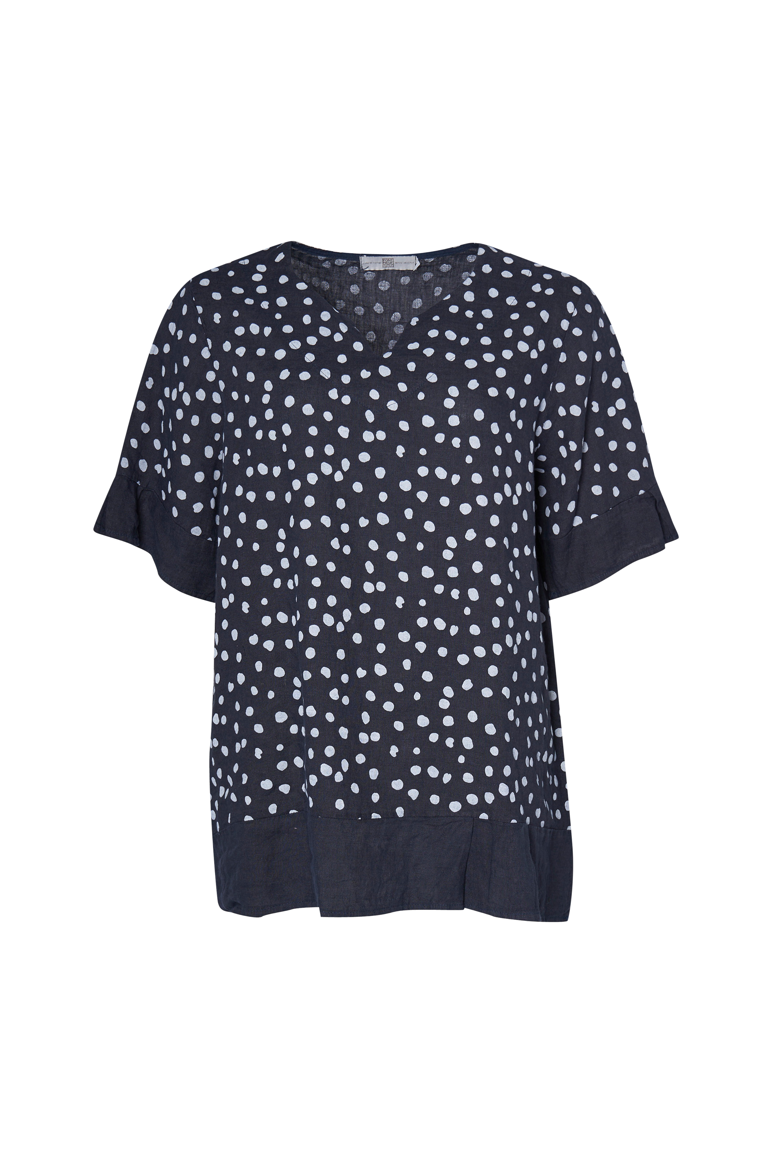 • Store størrelser• Lige, uformel model• Rund hals• Kort ærme• Påsyet kant med syet i folder lægge ved ærmeafslutningerne og ved nederste kant