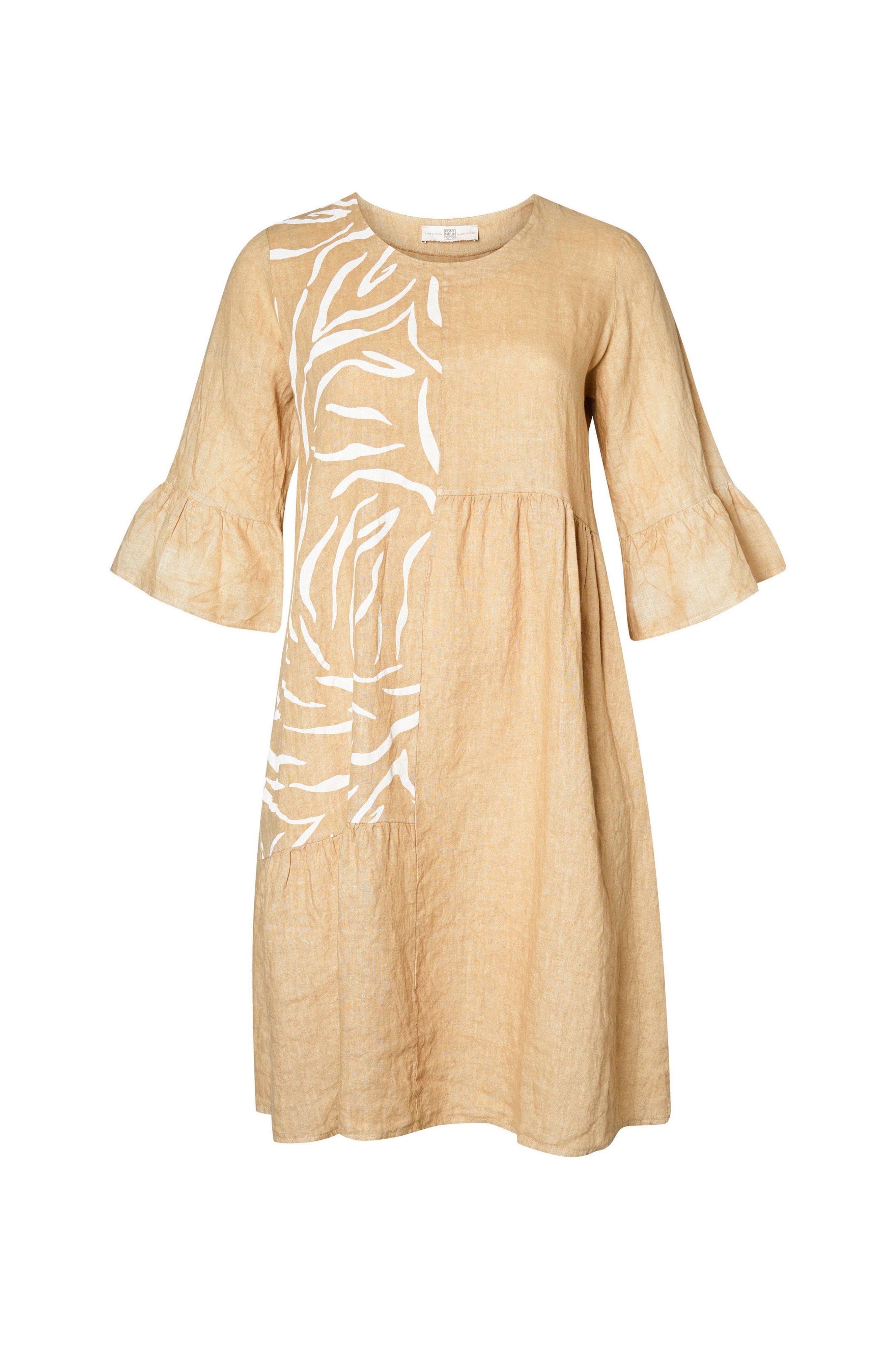 • Store størrelser• Bred model• Rund hals• 3/4 langt ærme med svaj med volant ved manchetterne• Længde: 110 cm i størrelse M