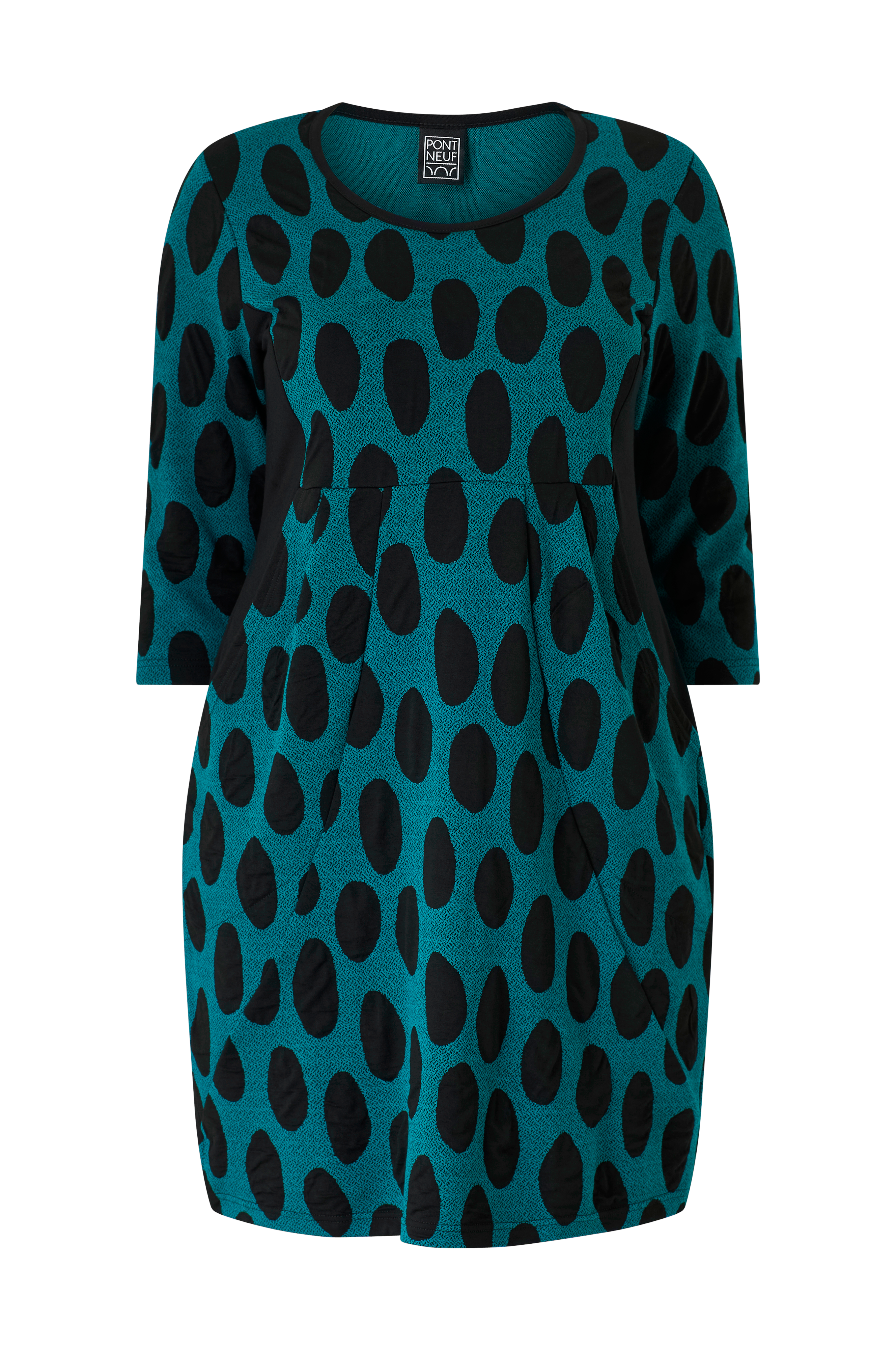 • Elastisk, mønstret kjole• Rund halsudskæring• 3/4 lange ærmer• Sidelommer• Plusstørrelser• Længde: 100 cm i størrelse M