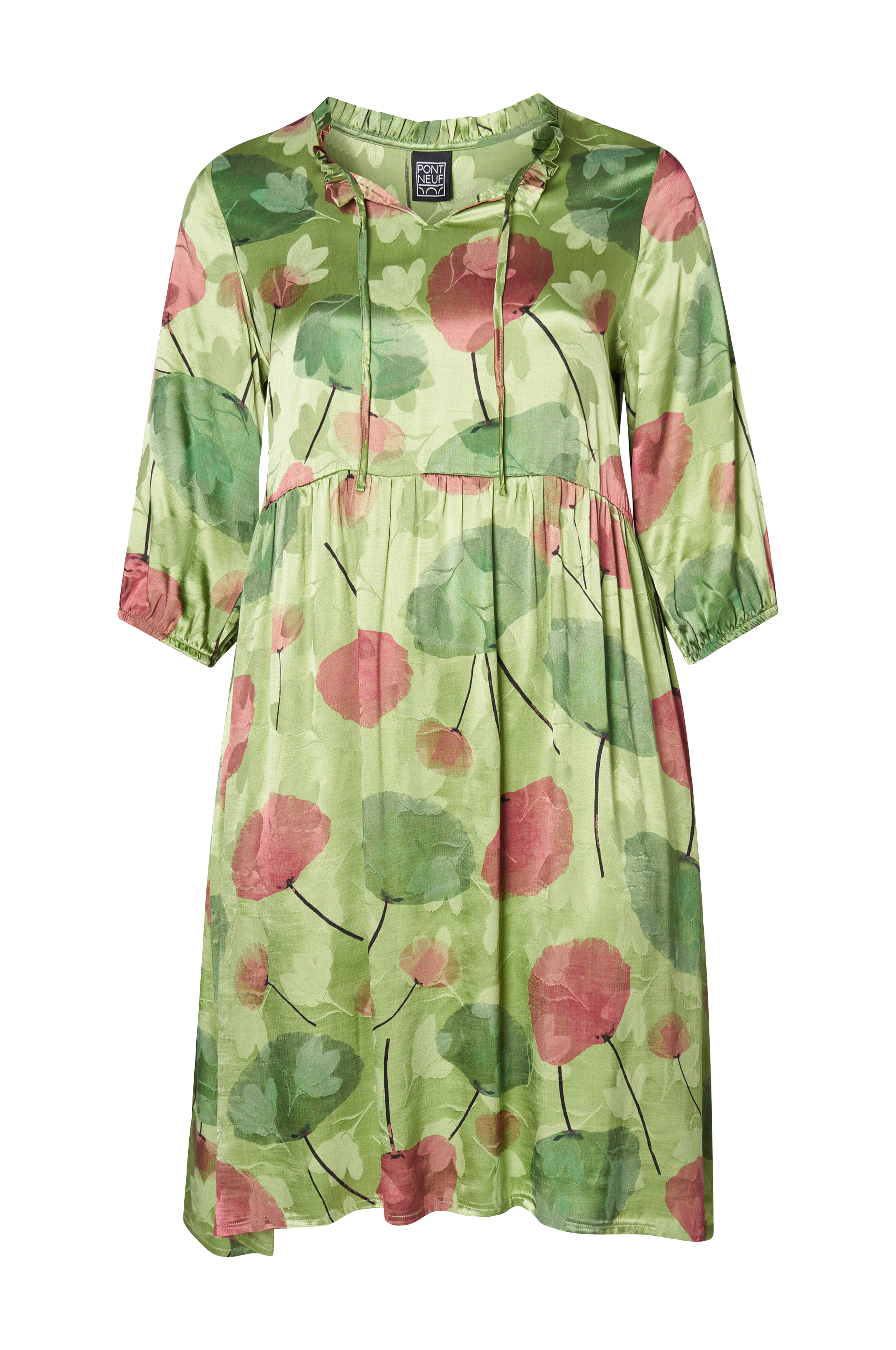 • A-linje design• Afrundet udskæring med flæsekant• Ventilation med bindebånd på halsen• 3/4 lange ærmer med elastisk bånd ved manchetterne• Udskæring ved taljen med samling• Store størrelser• Længde: 115 cm i størrelse XL