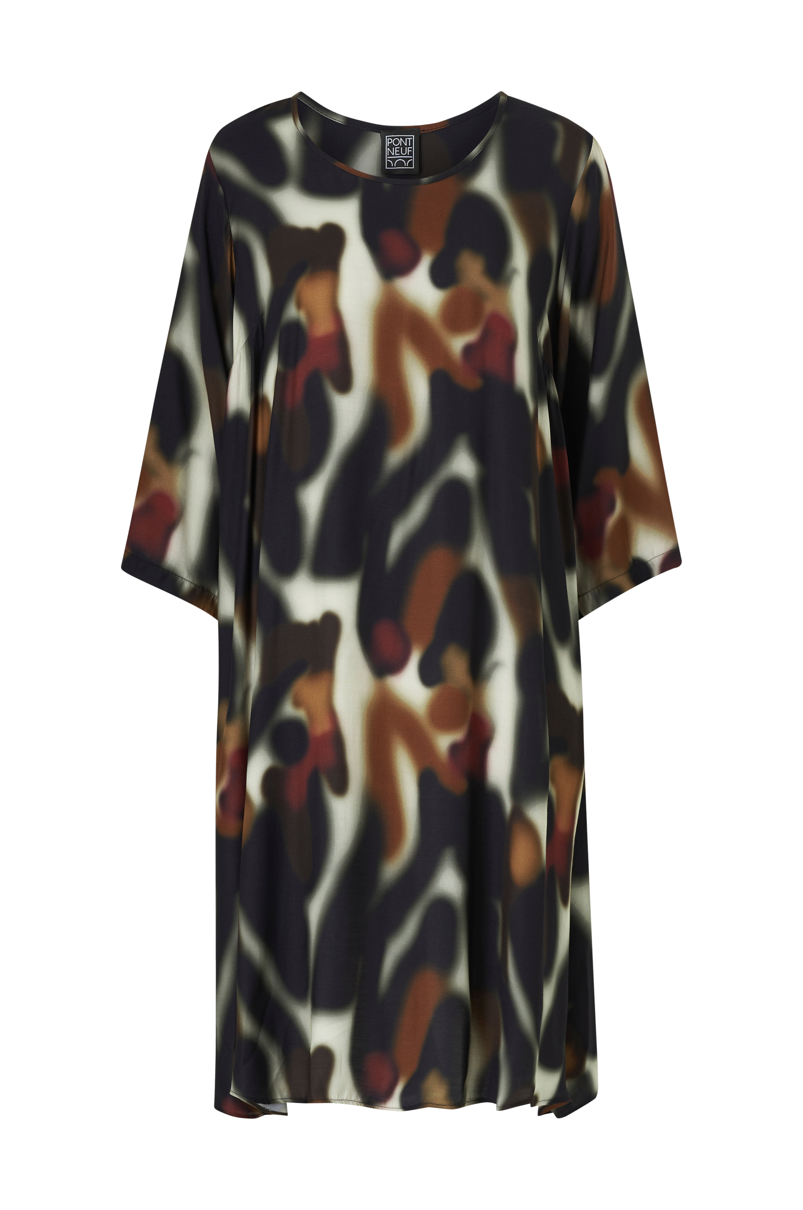 • Model med svaj• Rund hals• Lige, 3/4 langt ærme• Korte slidser nede i siderne• Længde: 109 cm i størrelse 42/44
