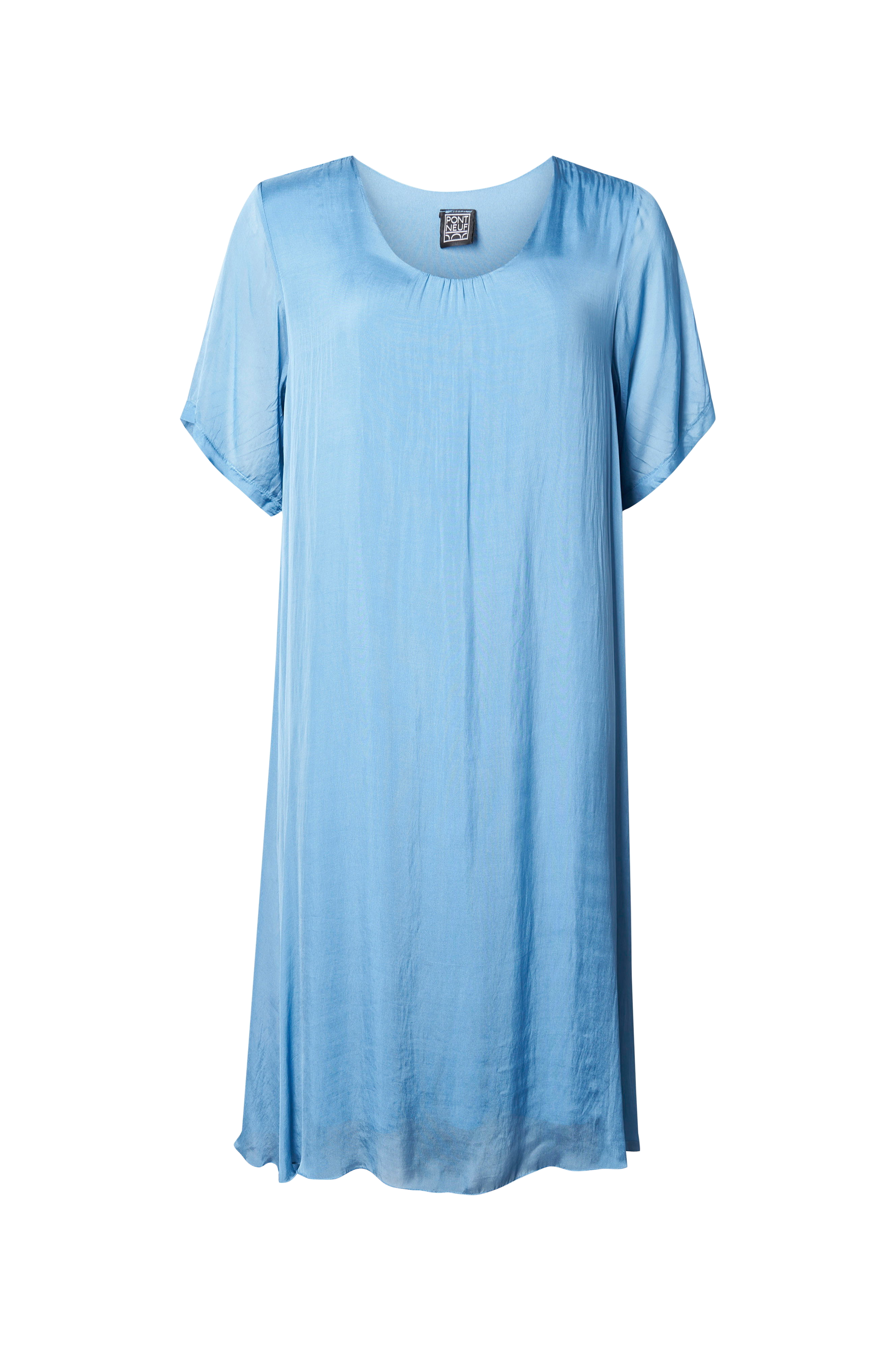 • Kjole i viskoseblanding med silkefølelse • Rund halsudskæring • Korte ærmer • Blød tekstilforing • Slids nede i siderne • Store størrelser • Længde: 116 cm i størrelse L/XL