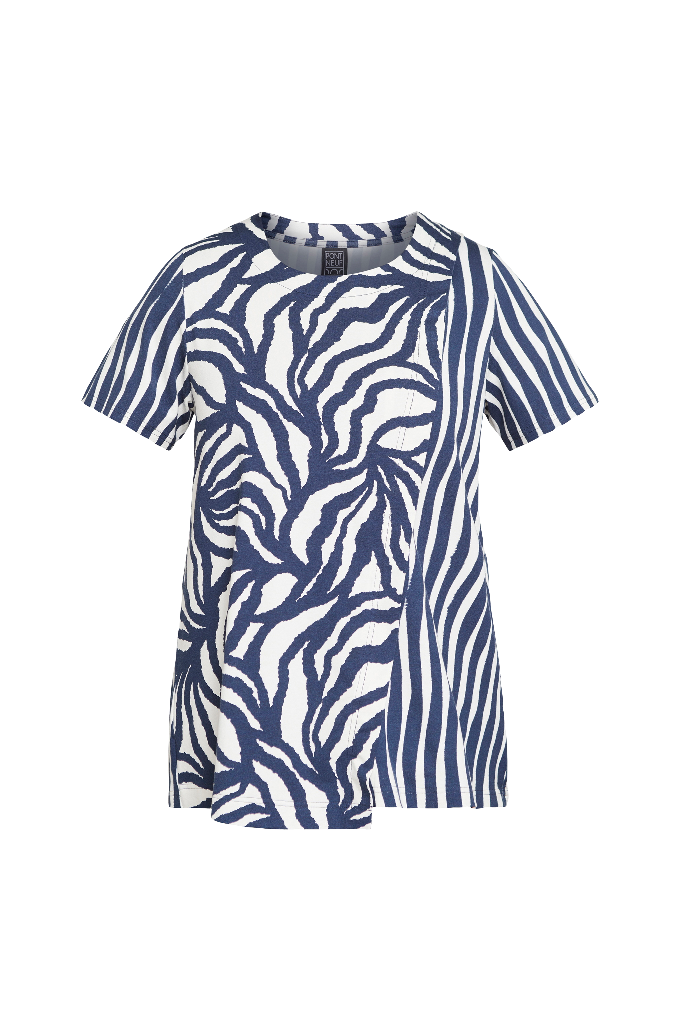 • Mønstret top i viskoseblanding• Rund halsudskæring• Korte ærmer• Bølgeformet detalje foran• Store størrelser