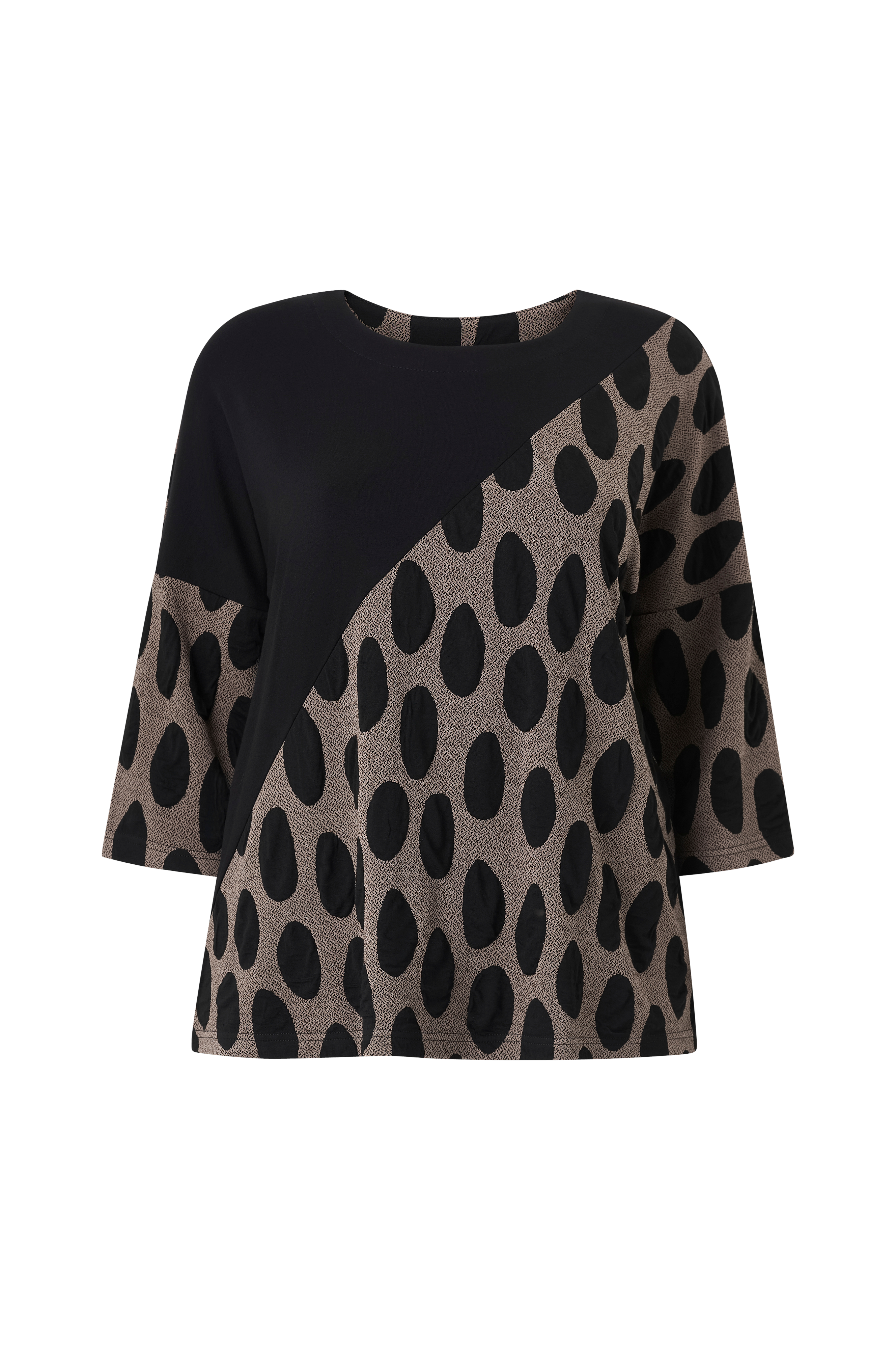 • Top i viskose med strukturmønster• Rund halsudskæring• 3/4 lange ærmer• Plusstørrelser