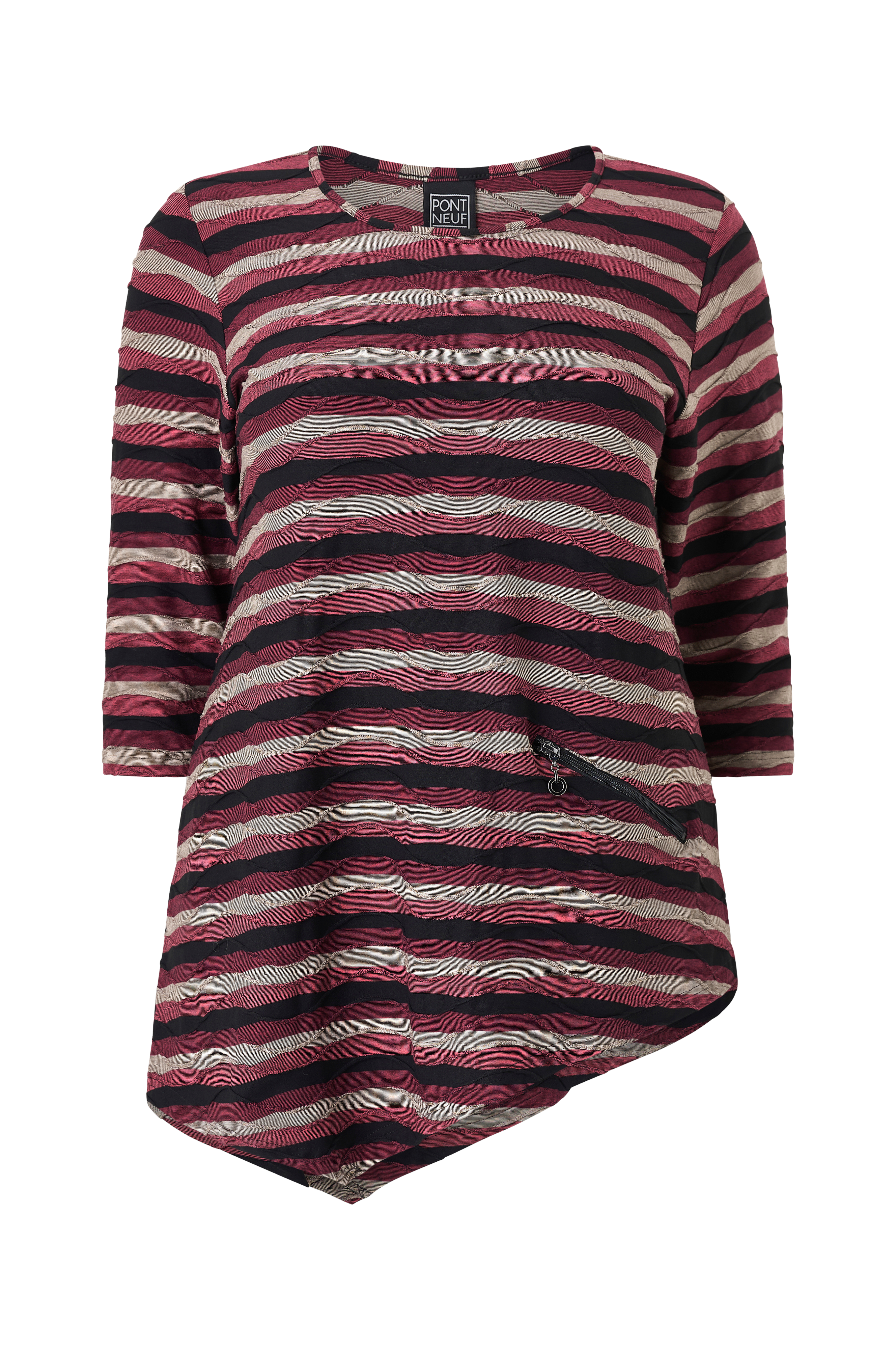 • Mønstervævet model med svaj• Rund hals• 3/4 lange ærmer• En lynlåslomme• Asymmetrisk søm• Store størrelser