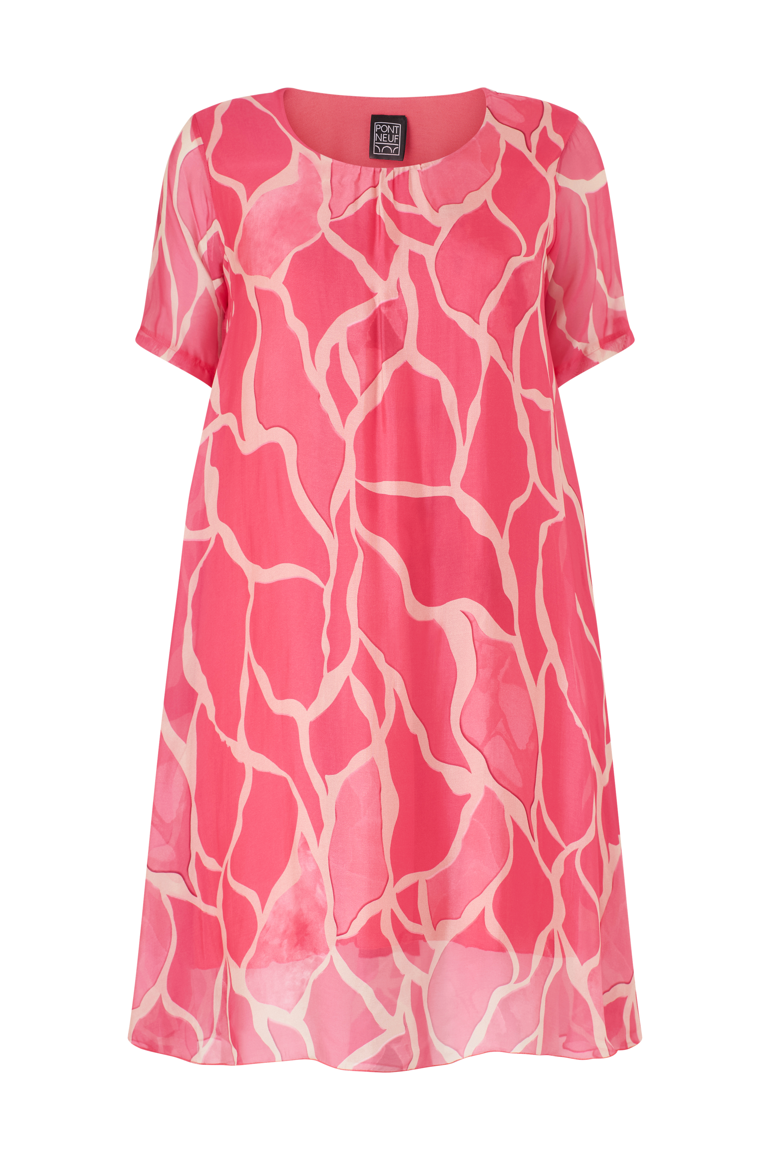 • Tunika i silke• Tekstilforing i viskose• Rund halsudskæring• Korte ærmer• Mønstret design• Store størrelser• Længde: 104 cm i størrelse M