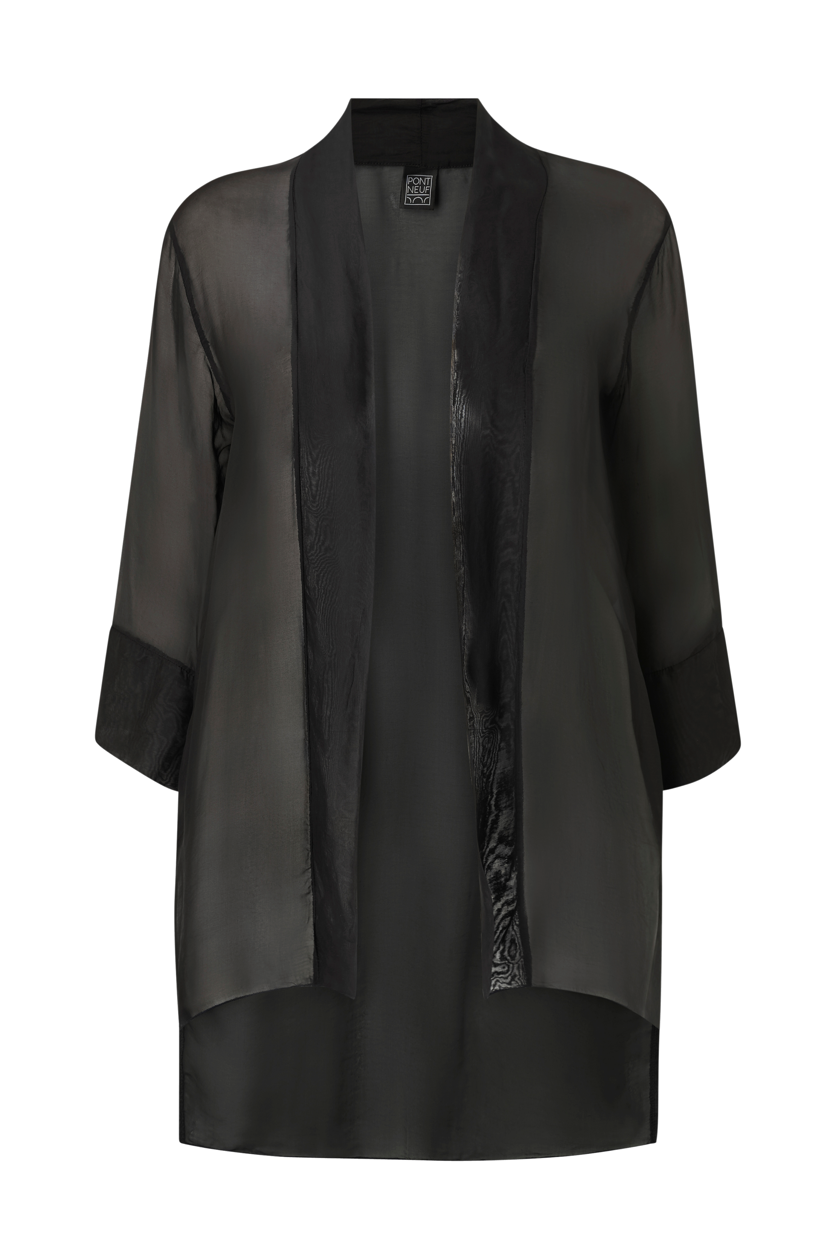 • Transparent tunika i silke og viskose• 3/4 lange ærmer• Åben forside• Slids nede i siderne• Bagside med længere søm• Store størrelser• Længde: 92 cm i størrelse L/XL
