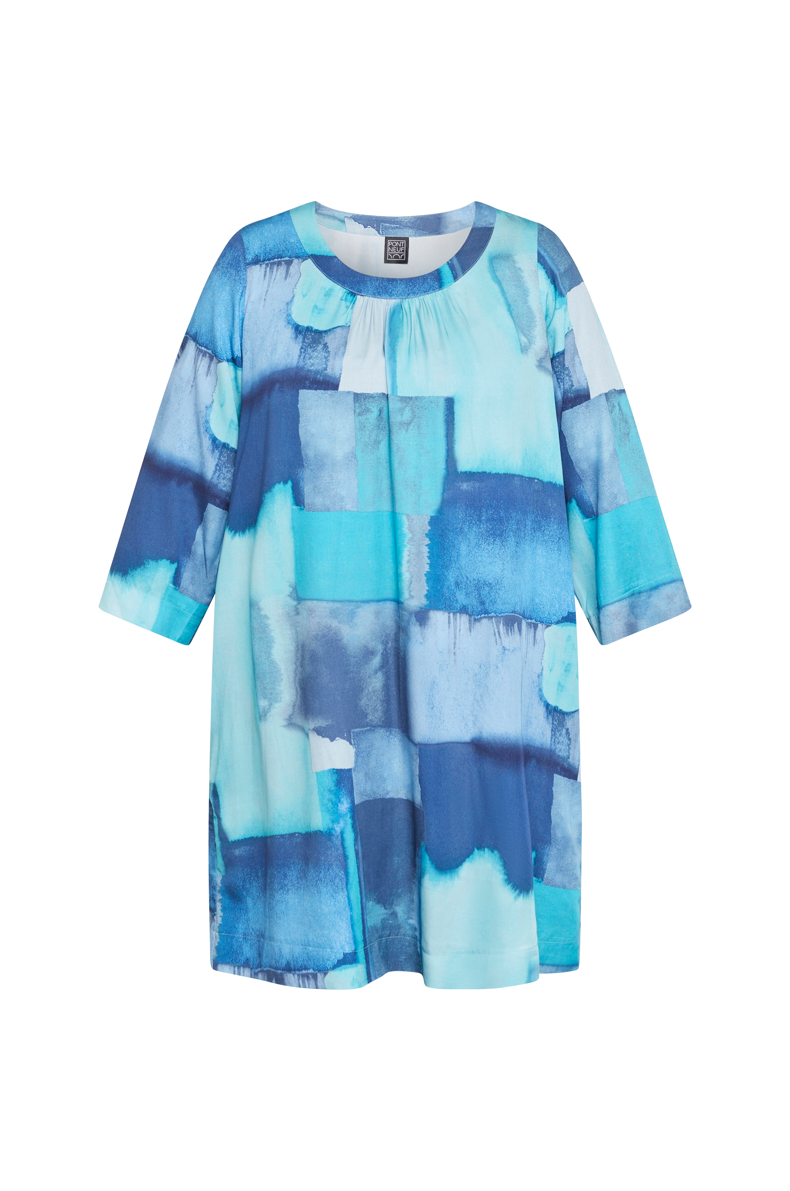 • Tunika i viskose• Rund halsudskæring• 3/4 lange ærmer• Bølgeformede detaljer foran• Sidelommer• Store størrelser• Længde: 94 cm i størrelse M