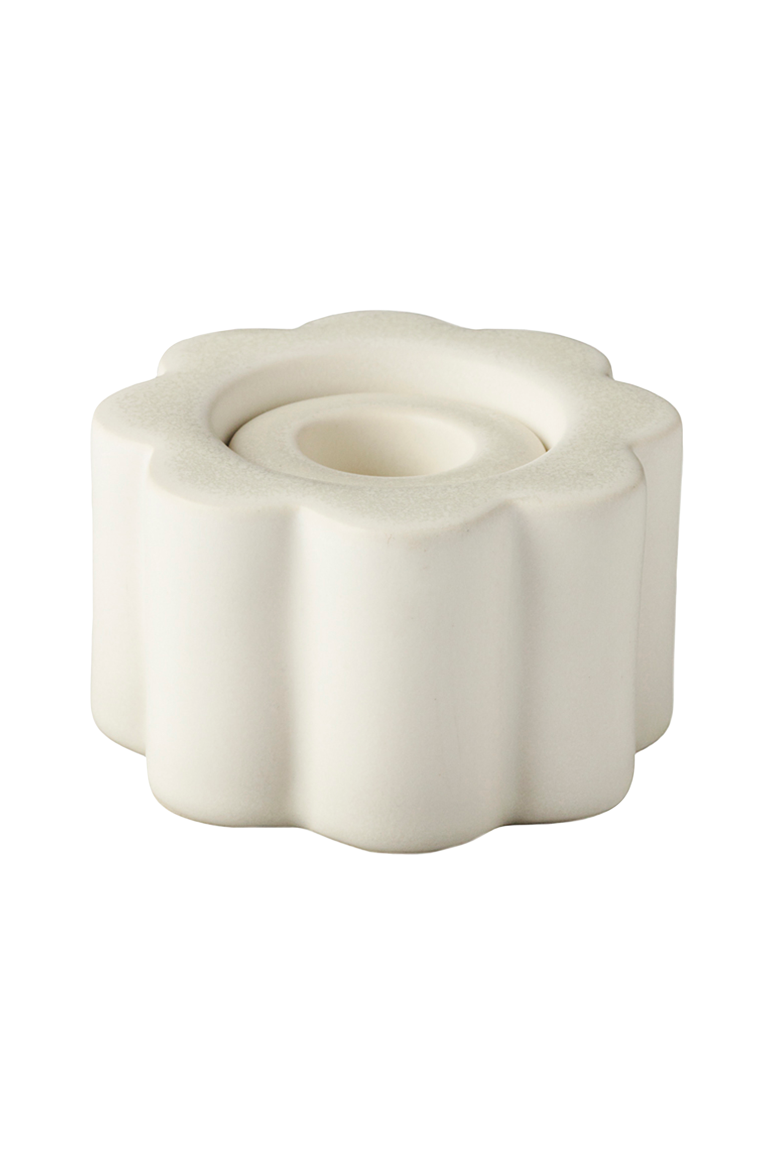 Kombineret håndlavet vase og lysestage, i stentøj med inspiration fra blomster.