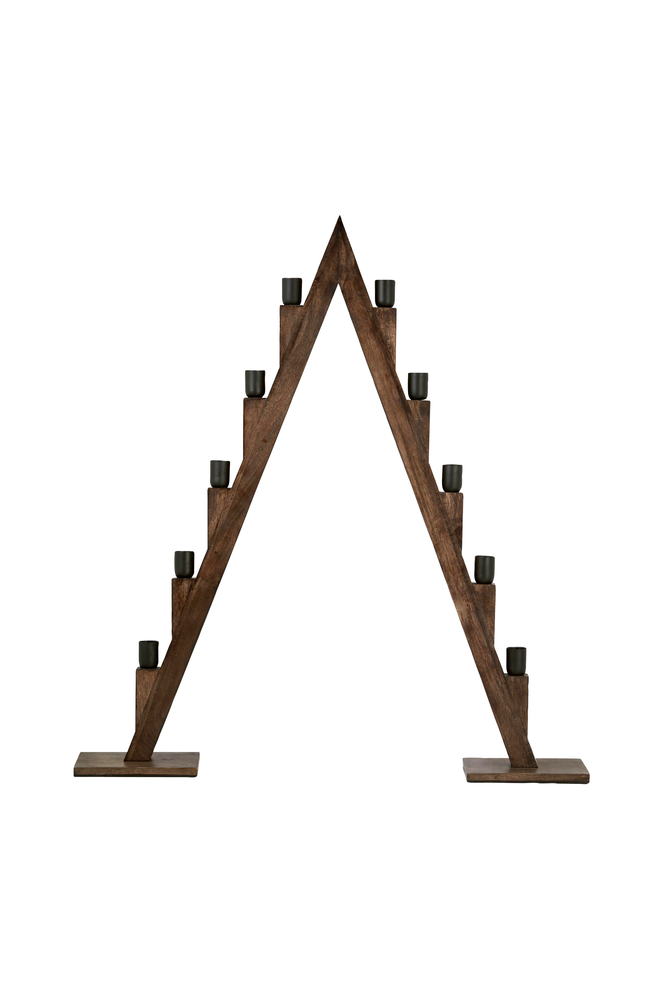 Adventslysestage Torsby er fremstillet af massivt, mørkbejdset brunt mangotræ. Lysestagen har 10 fatninger i sort metal som er beregnet til pærer med sokkel E27. Den har en sort stofledning på 170 cm og er forsynet med dæmper. Højde 116 cm, bredde 106 cm, dybde 17 cm.