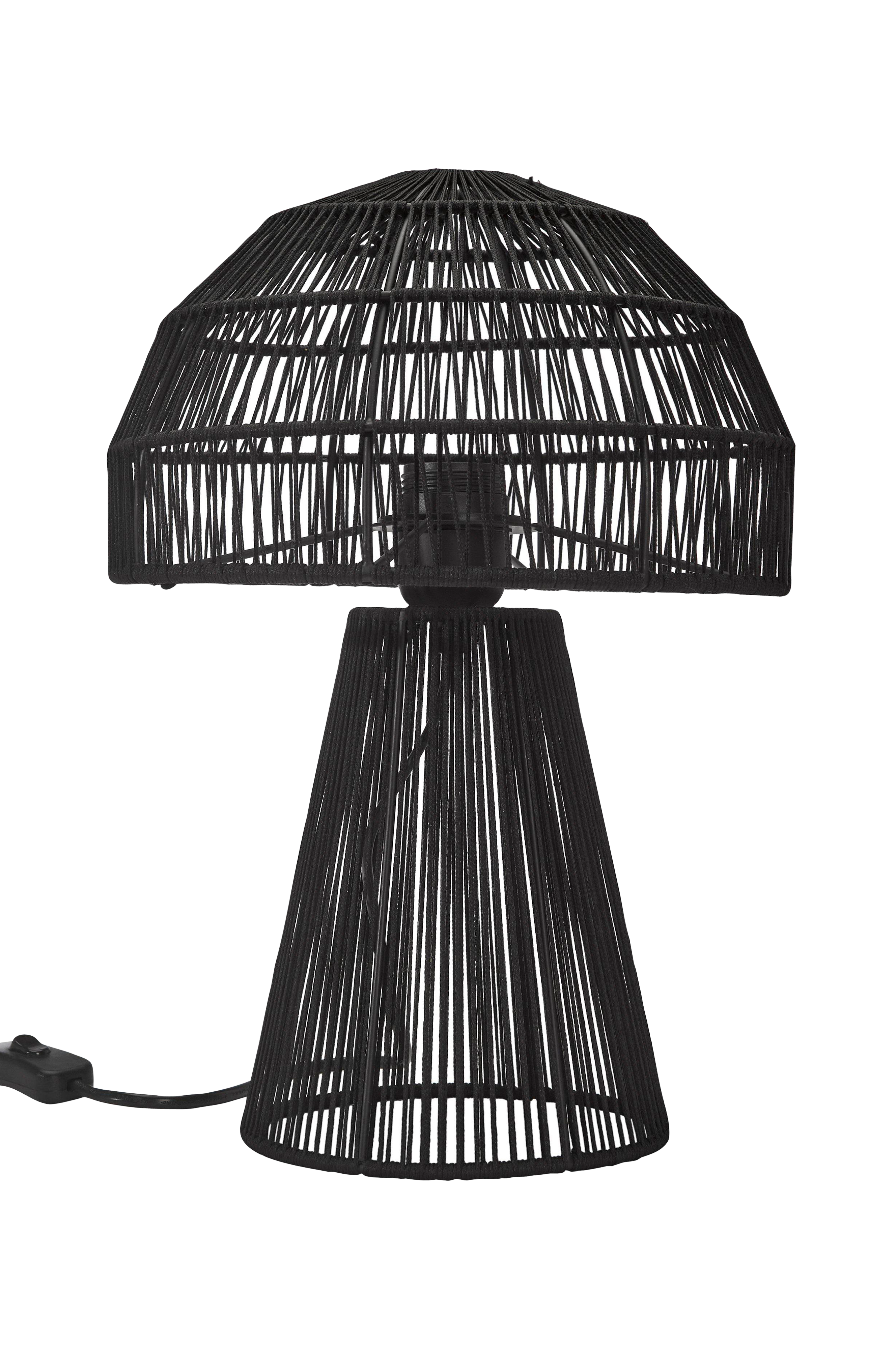 Bordlampe Porcini er en håndlavet lampe af en metalramme som er viklet ind i blankt garn. Bliver et blikfang i dit hjem med sin fine form. Sort. Højde 37 cm, skærmens diameter 25 cm og forneden foden 15 cm. 1,6 m sort plast med strømafbryder og stik. Maks. 40 W. IP20. Pære medfølger ikke. Mindre afvigelser kan forekomme da lampen er fremstillet i hånden.