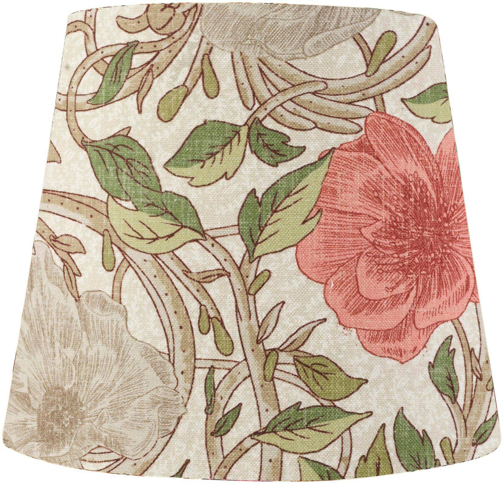 Lampeskærm Mia i bomuldsstof med skønt mønster. Lampeskærmen har en pæreklemme, som fastgøres på pæren. Højde 17 cm, diameter forneden 20 cm, foroven 14 cm.