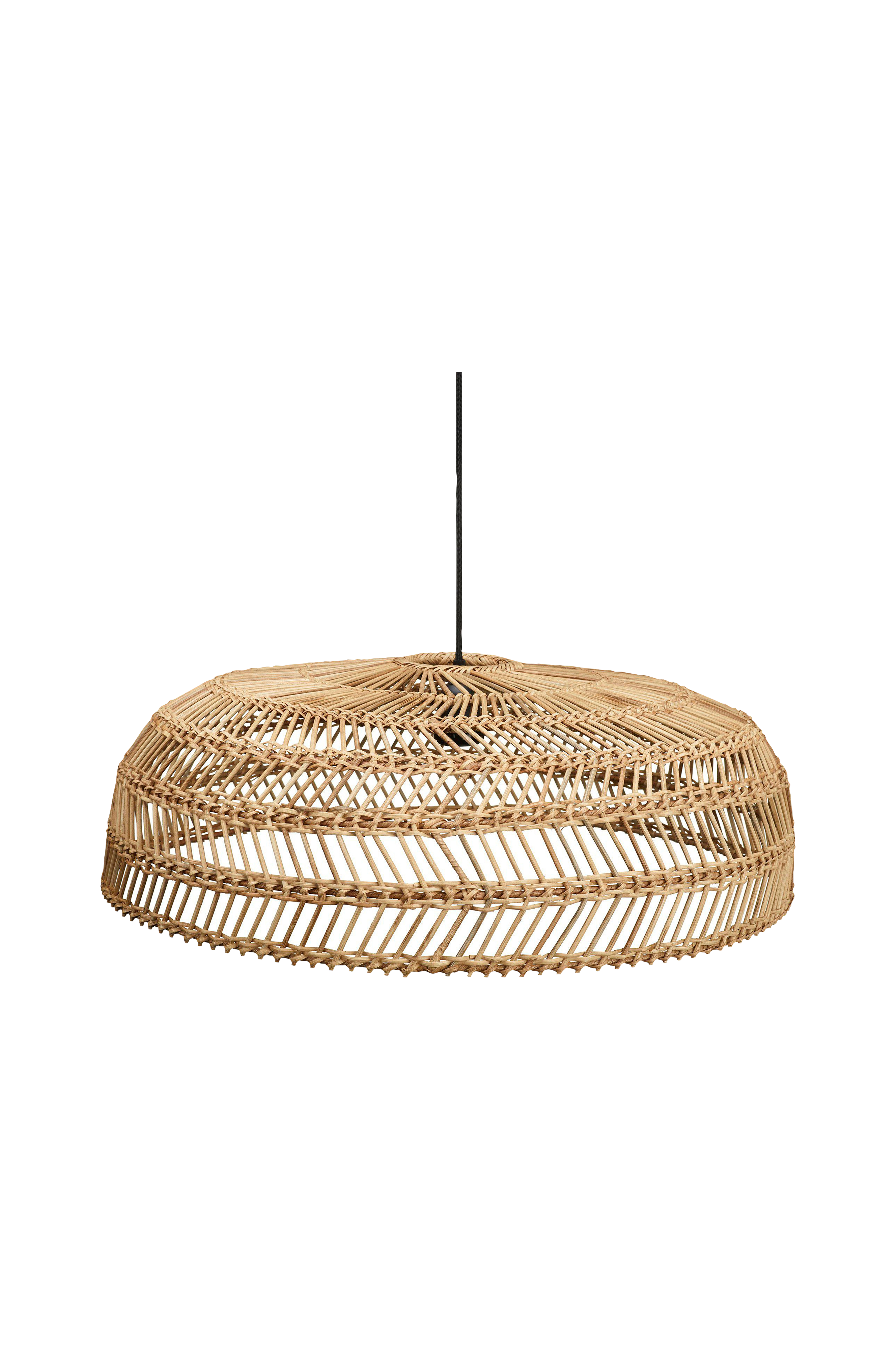 Loftlampe Denise er flettet i naturrotting. Naturmaterialet kan skifte i farve og udseendet kan påvirkes af vejr og vind. Hver enkelt skærm er håndlavet og der kan forekomme mindre afvigelser i størrelse. Leveres med sort E27 Flex Out loftophæng til udendørs brug 2,5 meter. Højde 16 cm og diameter 46 cm. Skærmen har E27 bærering. Skærmen er tilpasset til pærer med maks. 40W. Lyskilde medfølger ikke, kan købes separat.