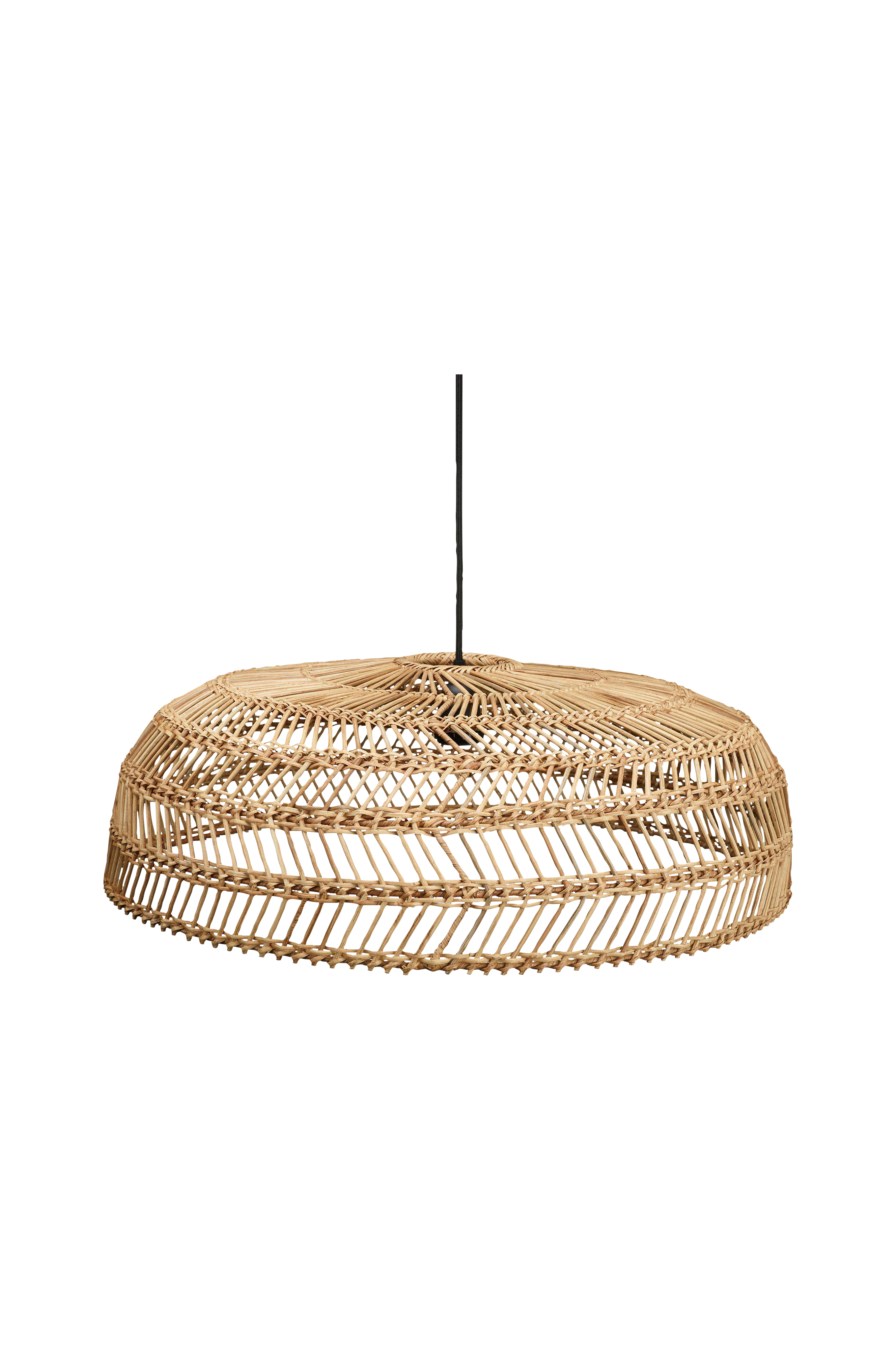 Loftlampe Denise er flettet i naturrotting. Naturmaterialet kan skifte i farve og udseendet kan påvirkes af vejr og vind. Hver enkelt skærm er håndlavet og der kan forekomme mindre afvigelser i størrelse. Leveres med sort E27 Flex Out loftophæng til udendørs brug 2,5 meter. Højde 16 cm og diameter 46 cm. Skærmen har E27 bærering. Skærmen er tilpasset til pærer med maks. 40W. Lyskilde medfølger ikke, kan købes separat.